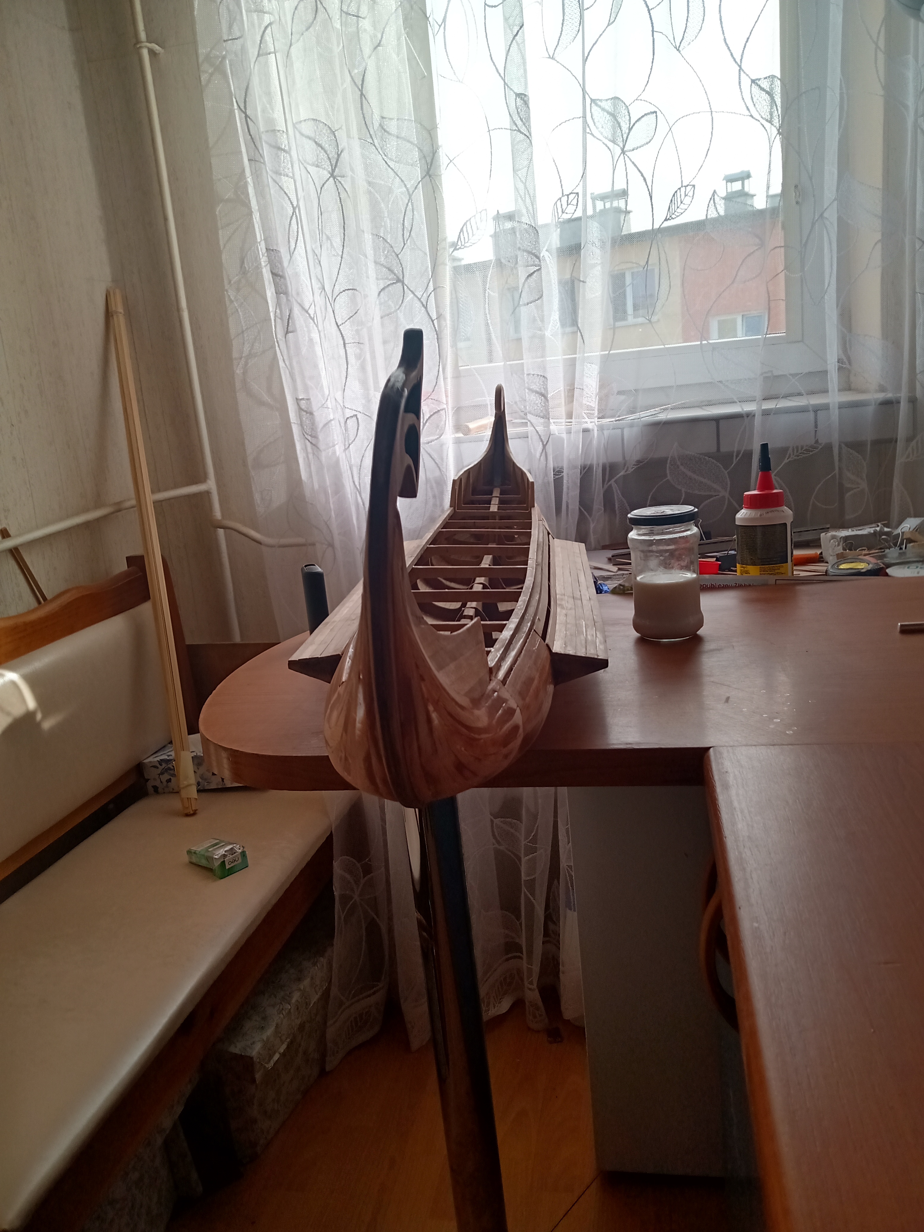 Też się zastanawiałem, czy zrobić kopyto, i wykonać kadłub z laminatu, ale nigdy ne budowałem statków, i zawsze podobały mi się właśnie te wykonane z drewna, dlatego robię tą metodą. Jak sięgam pamięcią te 40l wstecz, to pamiętam że żaglówki i inne okręciki wykonywane były wyłącznie z drewna i były sterowane radiem, takim jak rosyjski PILOT 1 czy PILOT2 jakoś tak się nazywały, i nic się z nimi nie działo. Zobaczymy jak się będzie drewno na tym modelu zachowywało, myślę-jak dobrze zaimpregnuje to będzie OK.