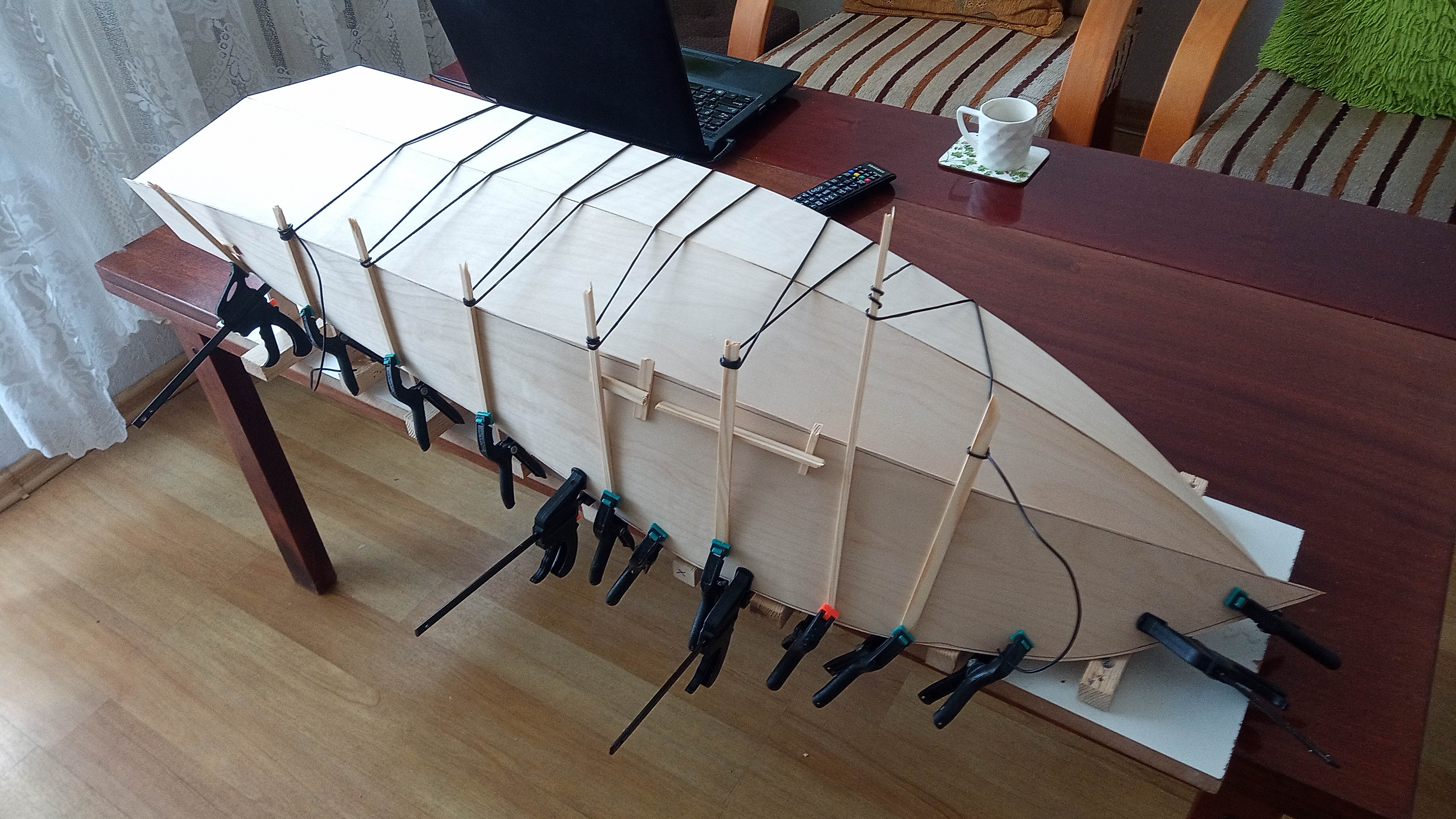 Dzisiaj rano, zdjąłem ściski z czwartej wklejonej listewki - wygląda na to że jest OK.