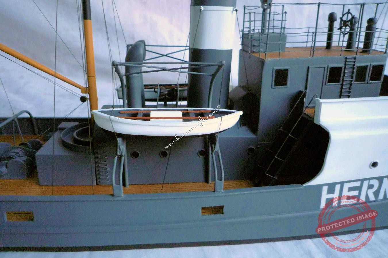 W trakcie budowy wyszła nowa sprawa. Na planie są żurawiki ale nie ma prowadnic do zsuwania szalupy, widoczne na zdjęciu.