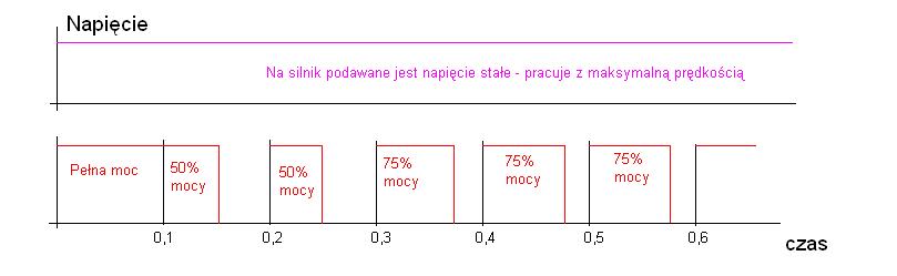 przez 0.05 sekundy, a przez pozostałe 0.05 sekundy nie, to silnik będzie się obracał wolniej.