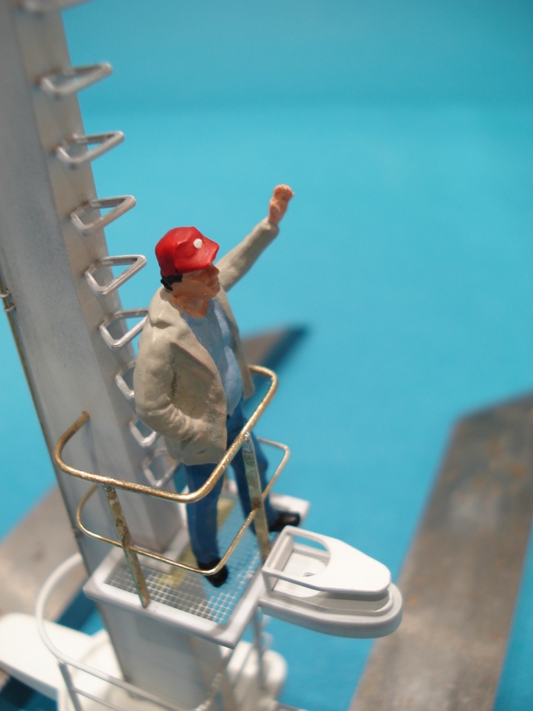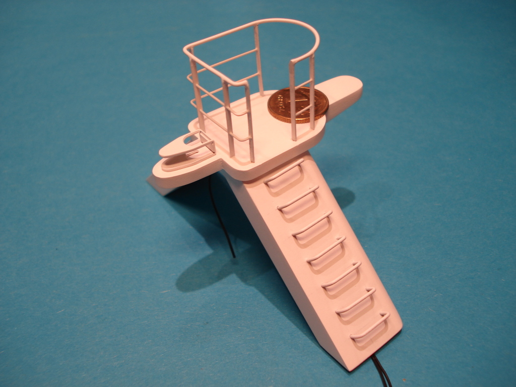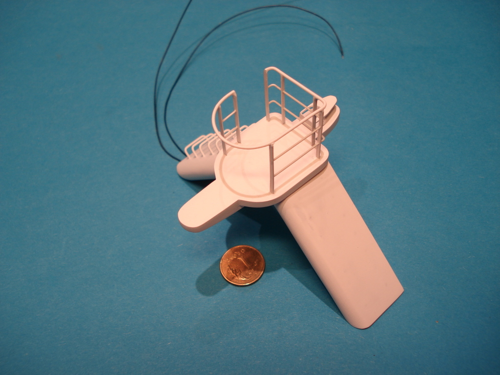 Zrobiłem z kawałka polistyrenu 0,25 mm , 0,5 mm i rurki plasticzanej trzon masztu . Wykonawszy "szkielet" masztu , owinąłem go na kształt cienkim polistyrenem.