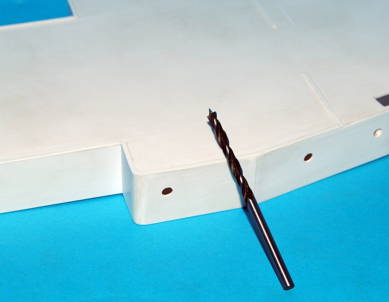 Jak widać na fotce wywierciłem już otwory pod bulaje. Po kilku próbach doszedłem do wniosku że najlepiej wykonuje się to wiertłem do drewna, takim jakie widać na foto.