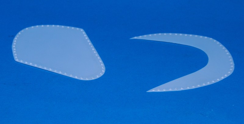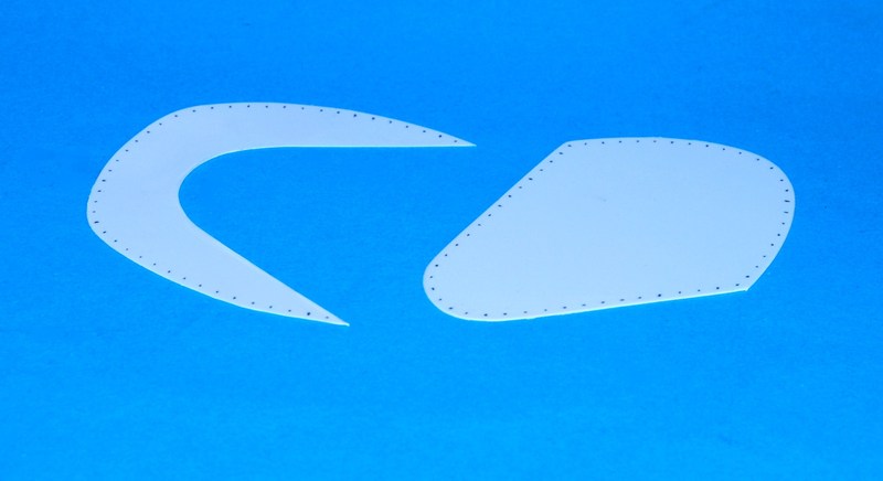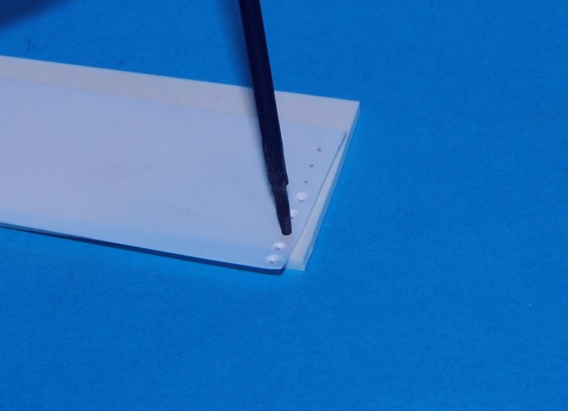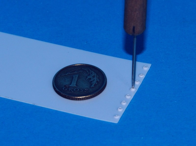 Wierzch w którym wykonane będą nity wykonany z polistyrenu 0,25 mm i naniesionymi ołówkiem miejscami dla nitów.