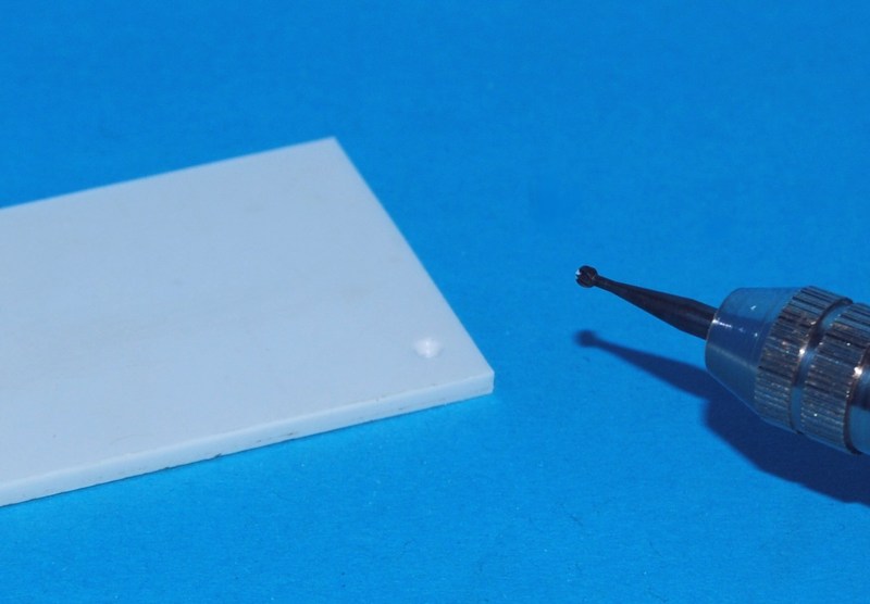 W płytce polistyrenu wykonałem frezem półokrągłe wgłębienie