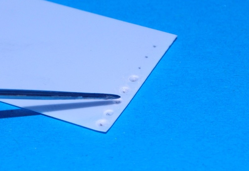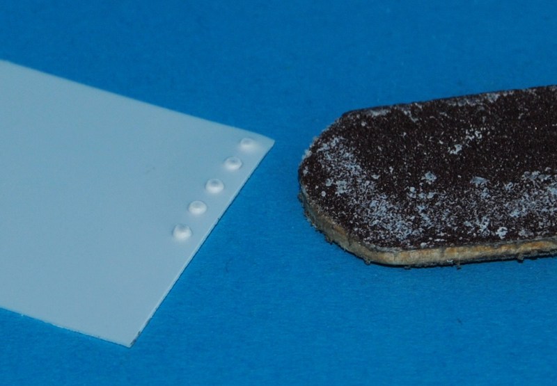 Tym sposobem we wcześniej przygotowanych płytkach polistyrenu wykonałem kilkadziesiąt nitów.