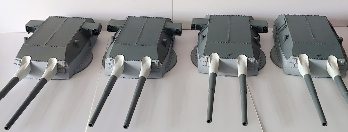 Kolejne podzespoły lądują w kartonie. Wieże artylerii głównej, każda z nich to średnio 312 elementów (średnio z uwagi na to że występują różnice między nimi) i nie wliczając w to nitów