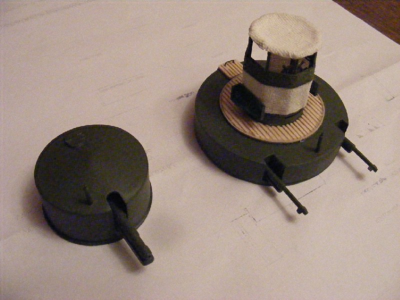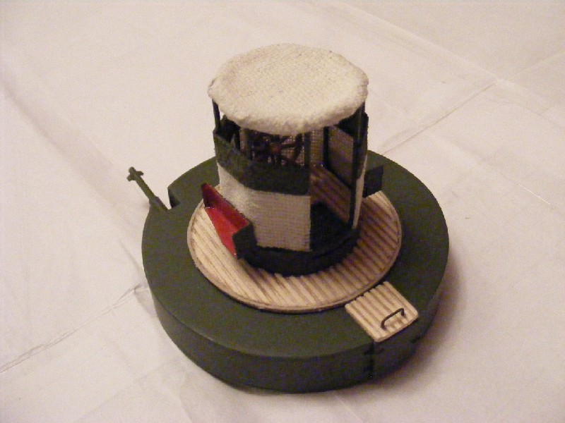 Wieża armatnia prawie gotowa. Do zamontowania pozostają światła pozycyjne (zakupiłem zbyt duże) i koło ratunkowe na frontowej stronie osłony stanowiska sterowego.