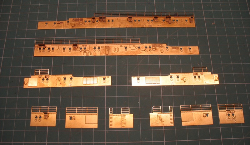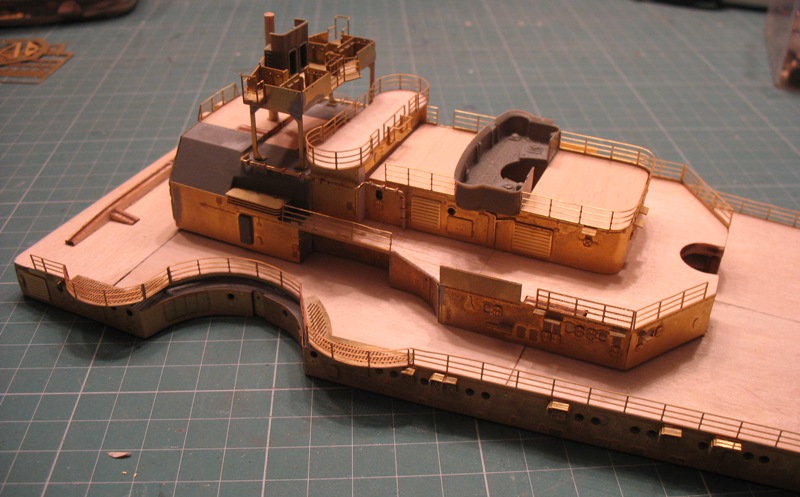 Dziś poprzyklejałem fototrawki do nadbudówek no i sobie złożyłem z pokładami by zobaczyć jak wygląda