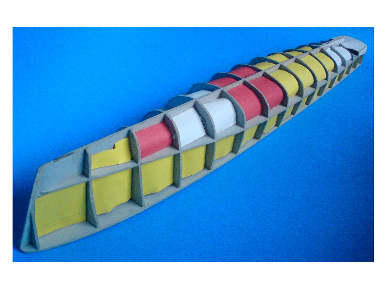 Następnie powstałe w ten sposób "komórki" wypełniłem gazetami, co bardzo pozytwnie wpłynęło na sztywność zarówno samych grodzi jak i całego modelu.