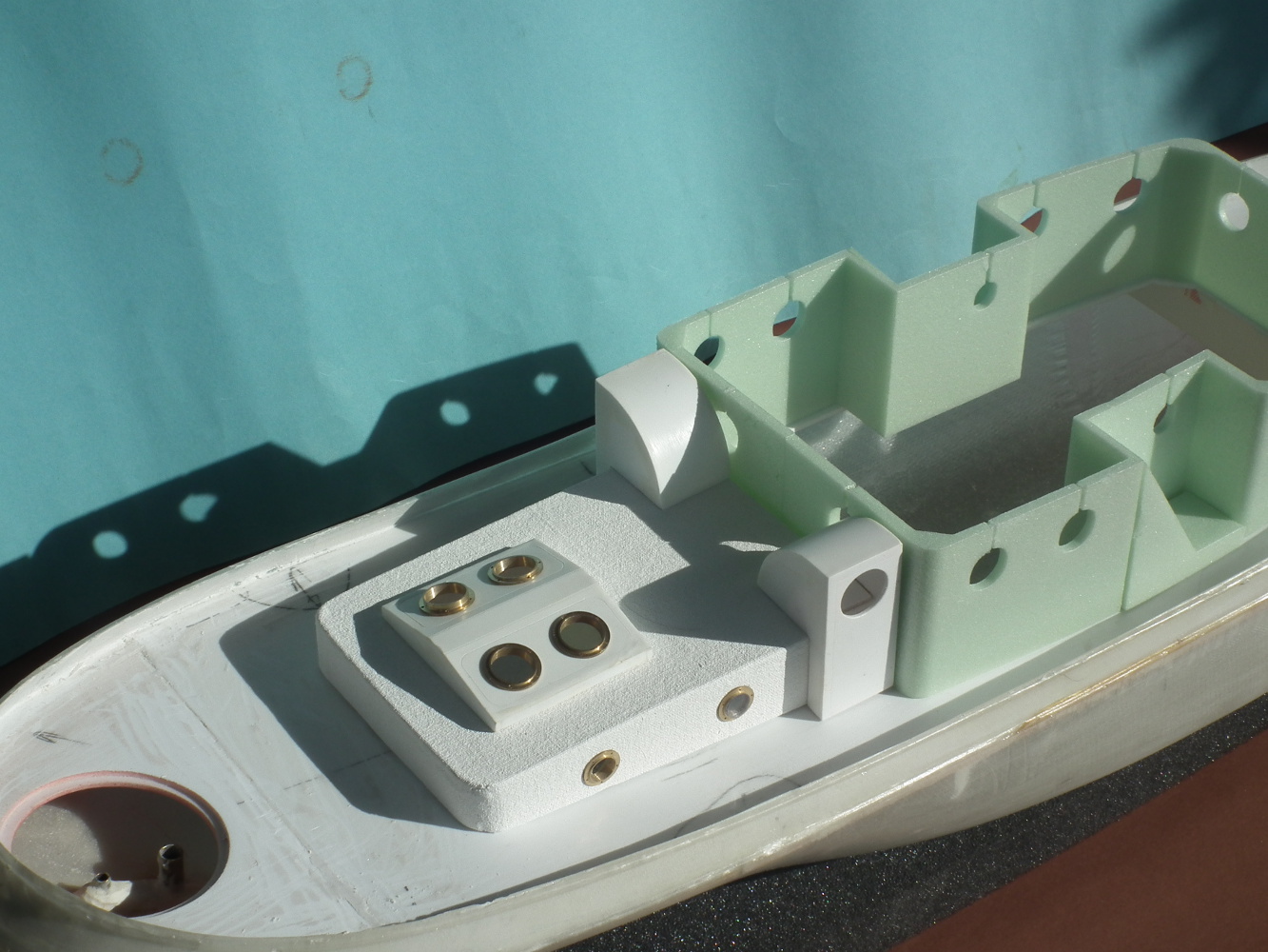 Teraz troszeczkę o wykończeniu nadbudówek . Wszystkie otwory jak np. bulaje są wykonywane CNC .