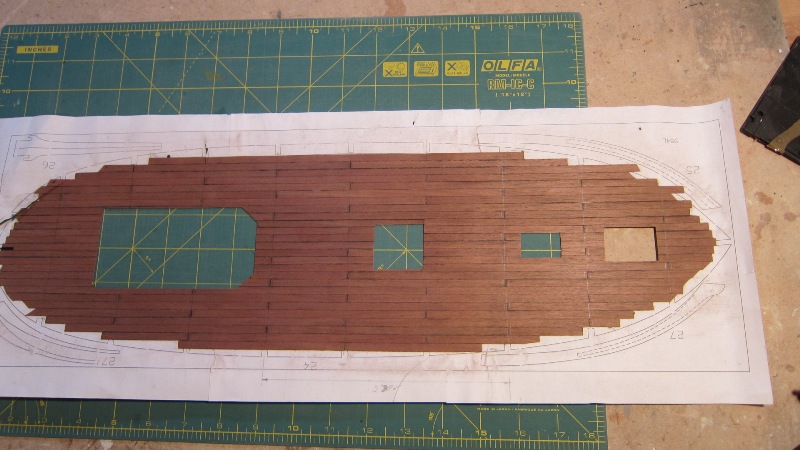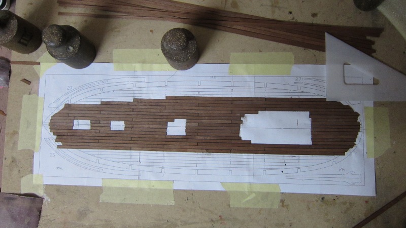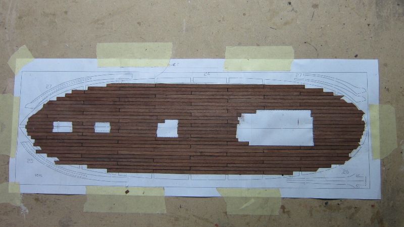 4. Sprawdziłem, że czernienie krawędzi desek pokładu mazakiem lepiej robić po uprzednim zabezpieczeniu ich przed nasiąkaniem (np. klejem).