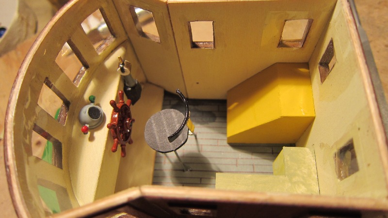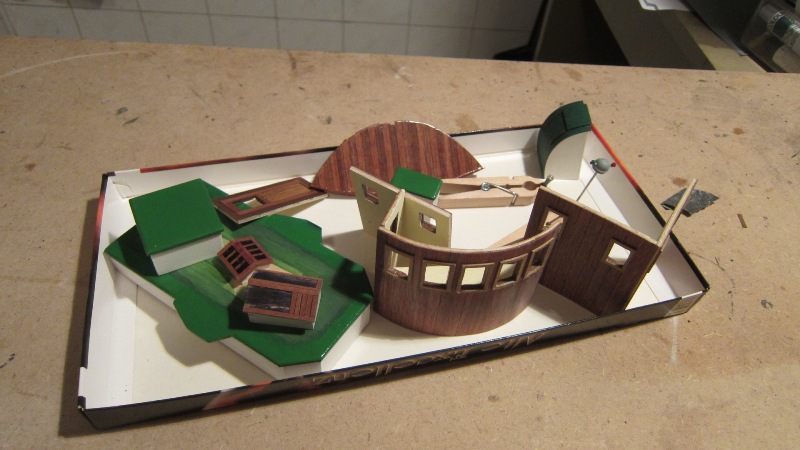 6. Przy okazji spróbowałem wykonania podłogi z patyczków od mieszania kawy, kołkowanych czernionymi wykałaczkami i malowanych drewnochronem, (lub mieszaniną drewnochronów) dla uzyskania odpowiedniej barwy. Uważam, że efekt jest do przyjęcia.
