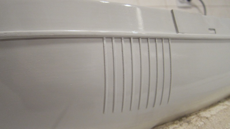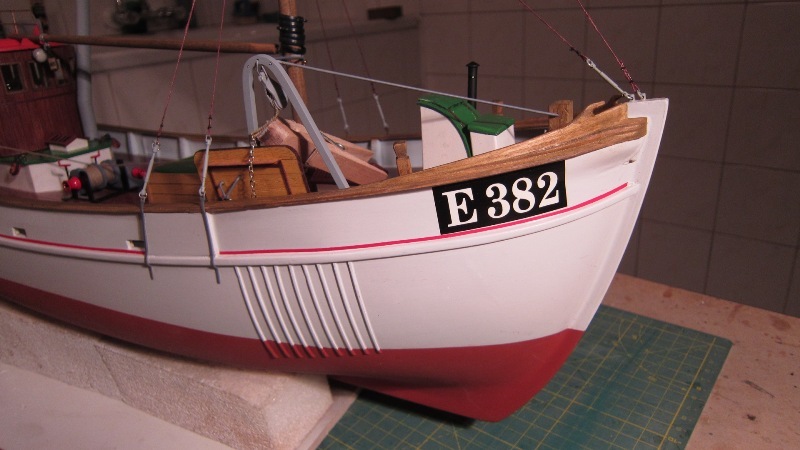 8. Najtrudniejsze i wymagające największej precyzji i czasu było wykonanie i pomalowanie wraz z kadłubem pionowych listew ochraniających kadłub przed uszkodzeniami sprzętem połowowym.