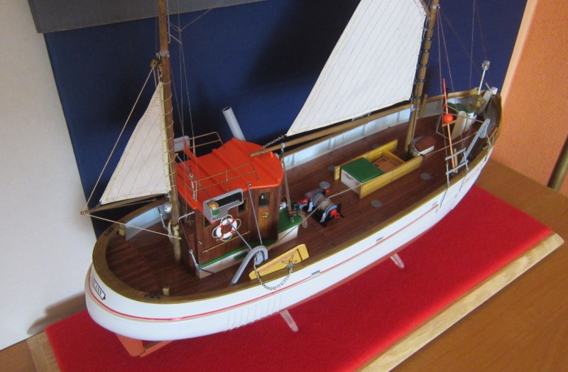Dla Kol. Seb77: kuter jest w skali 1:33. Można go kupić w kilku polskich modelarskich sklepach wysyłkowych, w cenie trochę ponad 500 zł. Może to nie jest tanio, ale masz kompletny zestaw wszystkich materiałów, super przygotowanych i w dobrej jakości. Materiał na żagle jest w zestawie, takoż patyczki na maszty oraz wycięte elementy sklejkowe i wszystkie rodzaje listewek balsowych i mahoniowych. Nie miałem do czynienia z innymi zestawami, ale uważam, że ten jest b. dobry. Zestawy tej wytwórni zajmują poczesne miejsce wśród zestawów sprzedawanych w wielu europejskich sklepach modelarskich.