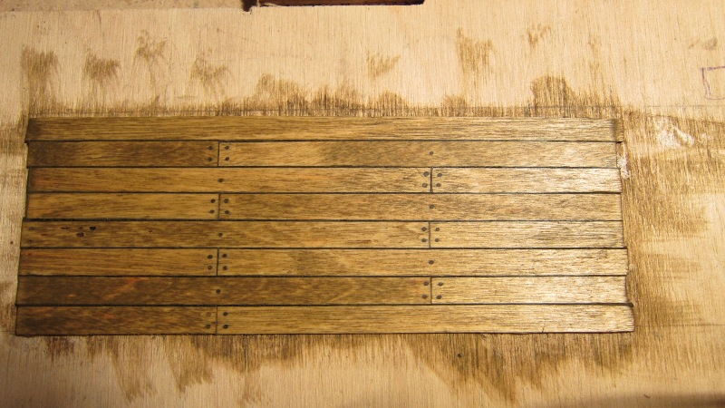 4. Sprawdziłem, że czernienie krawędzi desek pokładu mazakiem lepiej robić po uprzednim zabezpieczeniu ich przed nasiąkaniem (np. klejem).