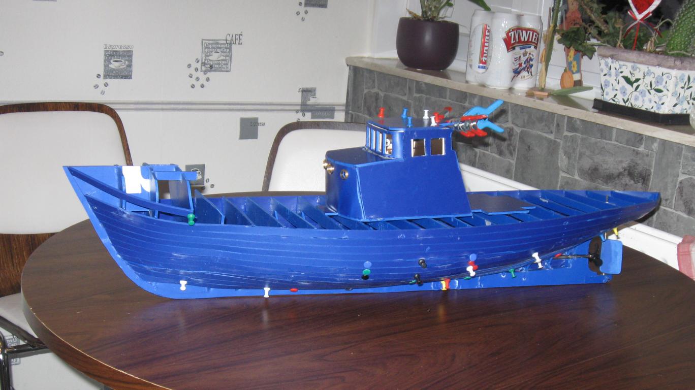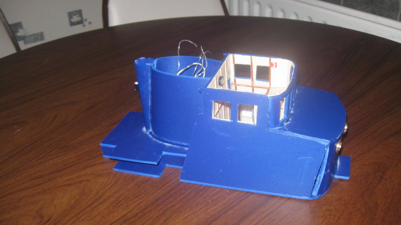 To tworzywo chyba jest niebieskie ale widzę, że można wyginać. Ścianki boczne i przednia powinny być z 1 kawałka, dogięte na ciepło (szablon jak wyżej z kartonu). Patrząc z boku przednia ścianka powinna być pod większym skosem. Poklad może być z cienkich szerszych deseczek np. fornir i w równych odstępach zrobione rysy. Nadburcia, zrób najpierw szablony. Nadbudówka lepiej jak jest nakładana na kołnierz. Wtedy woda nie napłynie do wewnątrz kadłuba bo widzę,że robisz "podłogę" Może być ale wyżej nad kołnierzem.