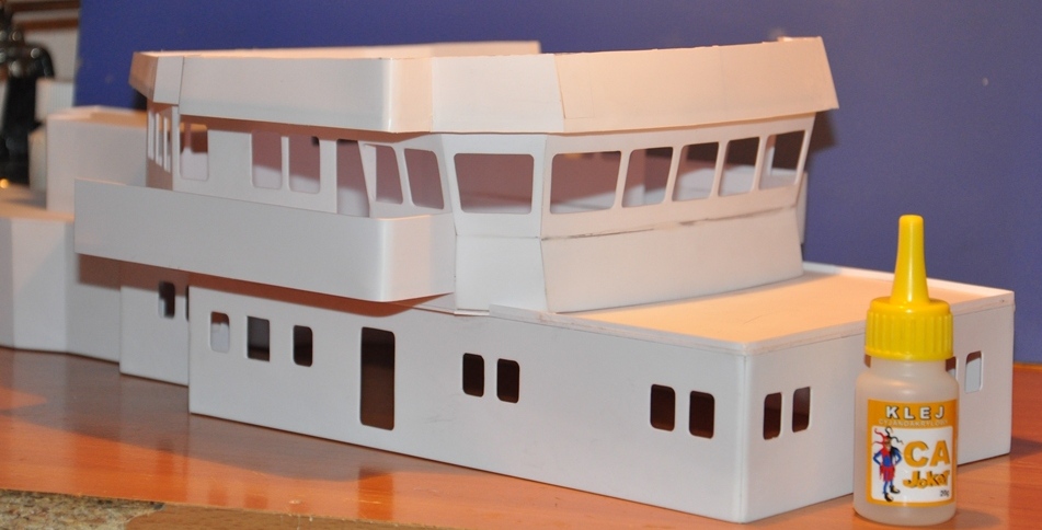 cezar65 - kopyto zacząłem robić już zanim skończyłem jacht, czyli nadrobiłem troszkę czasu. Co do nadbudówki, to z początku wiele myślałem jak się za to zabrać. Jak raz wyciąłem dół i przyszedł rychenko na wizytę, to właściwie większość poszła do kibla, gdyż po naszej rozmowie podsunął mi się pomysł wykonania okienek i potem poszło bardzo szybko :D