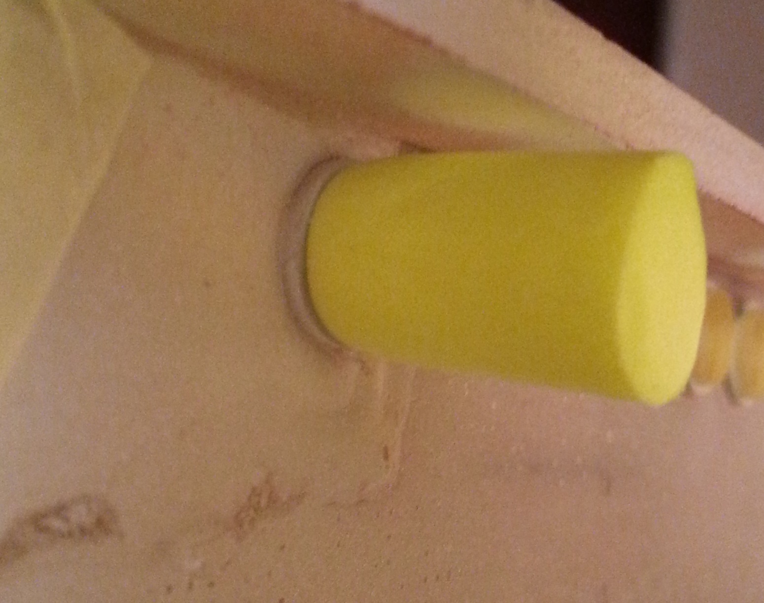 Ale wpadłem na pomysł jak sobie z tym poradzić. Użyłem zamiast taśmy maskującej zatyczki BHP do uszu. Są ze specjalnej pianki która sama się dopasowuje do otoczenia, co w moim przypadku sprawia że ładnie dopasowuje się do wnętrz okien: