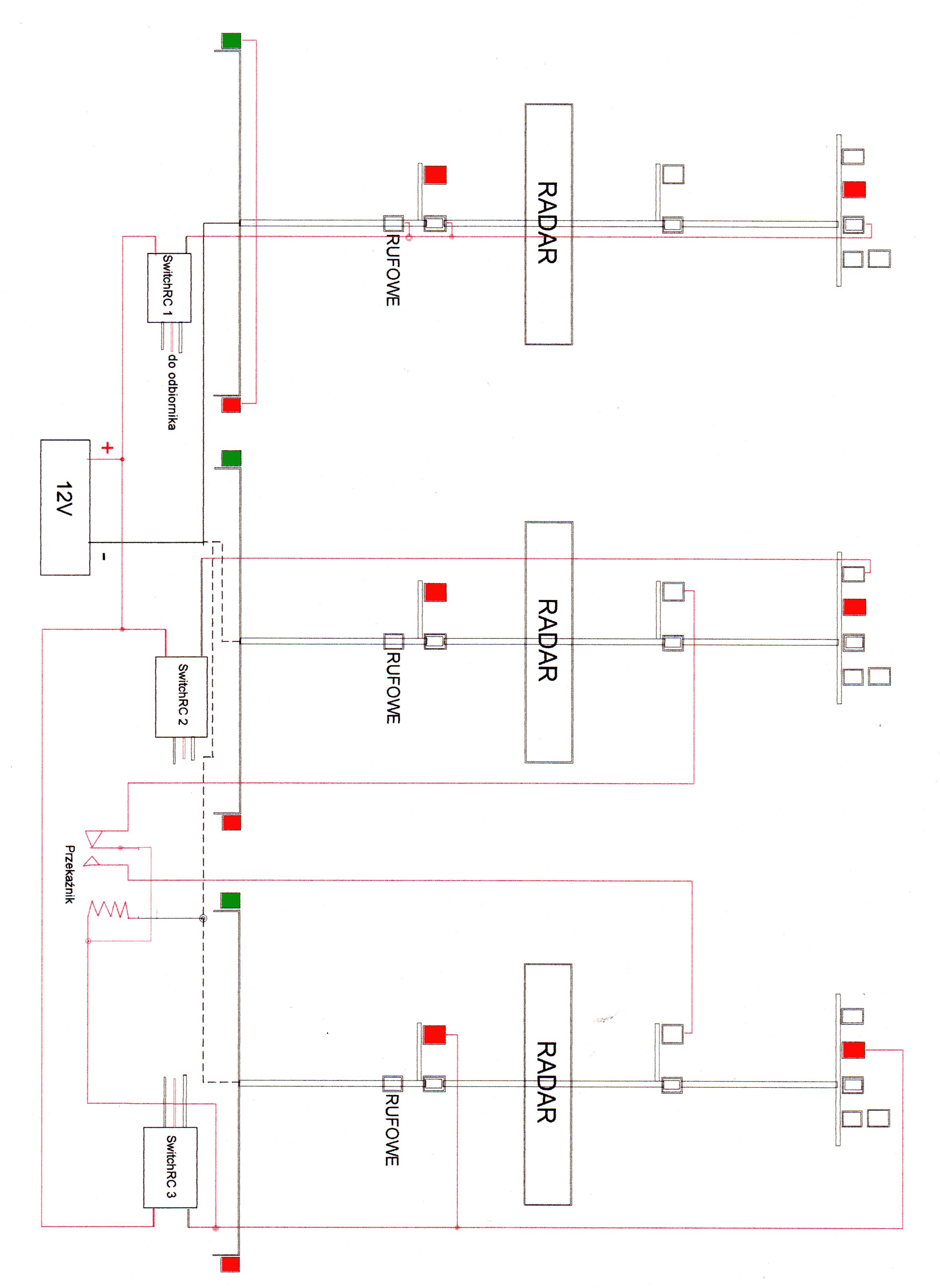 Włączenia dokonują Switch RC sterowane z nadajnika poprzez odbiornik i to rozwiązanie zabiera 3 kanały. Prosty przekażnik. Styk stale załączony powoduje świecenie 2 lampy w wersji holowanie, a załączenie Switch 3 powoduje zwarcie 2 styku i pali się 2 lampa w wersji ograniczona zdolność manewrowa.