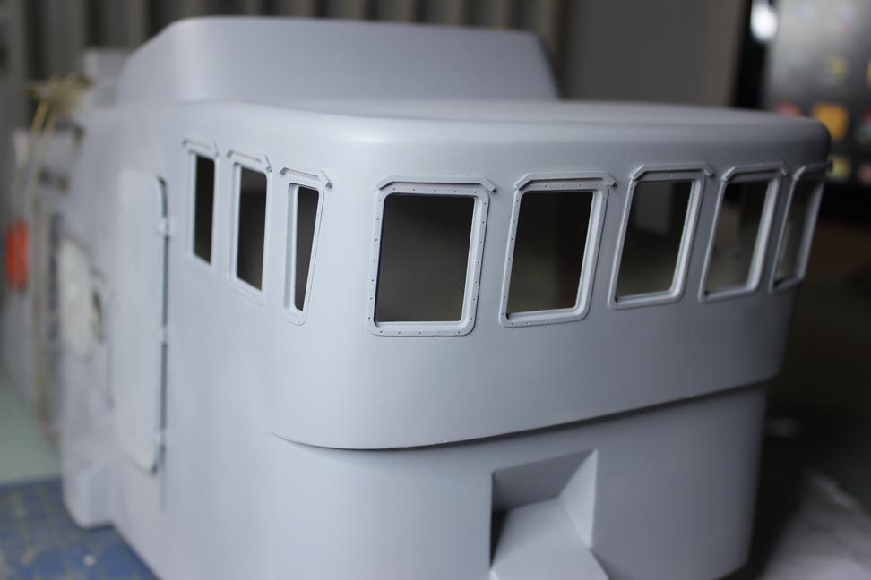 I jeszcze coś co jest też dobrze widoczne na modelu. Cała nadbudówka na dolnej krawędzi posiada dwa rzędy nitów, a świetlik na tylnej części jeden rząd. Też to widać na zdjęciach.