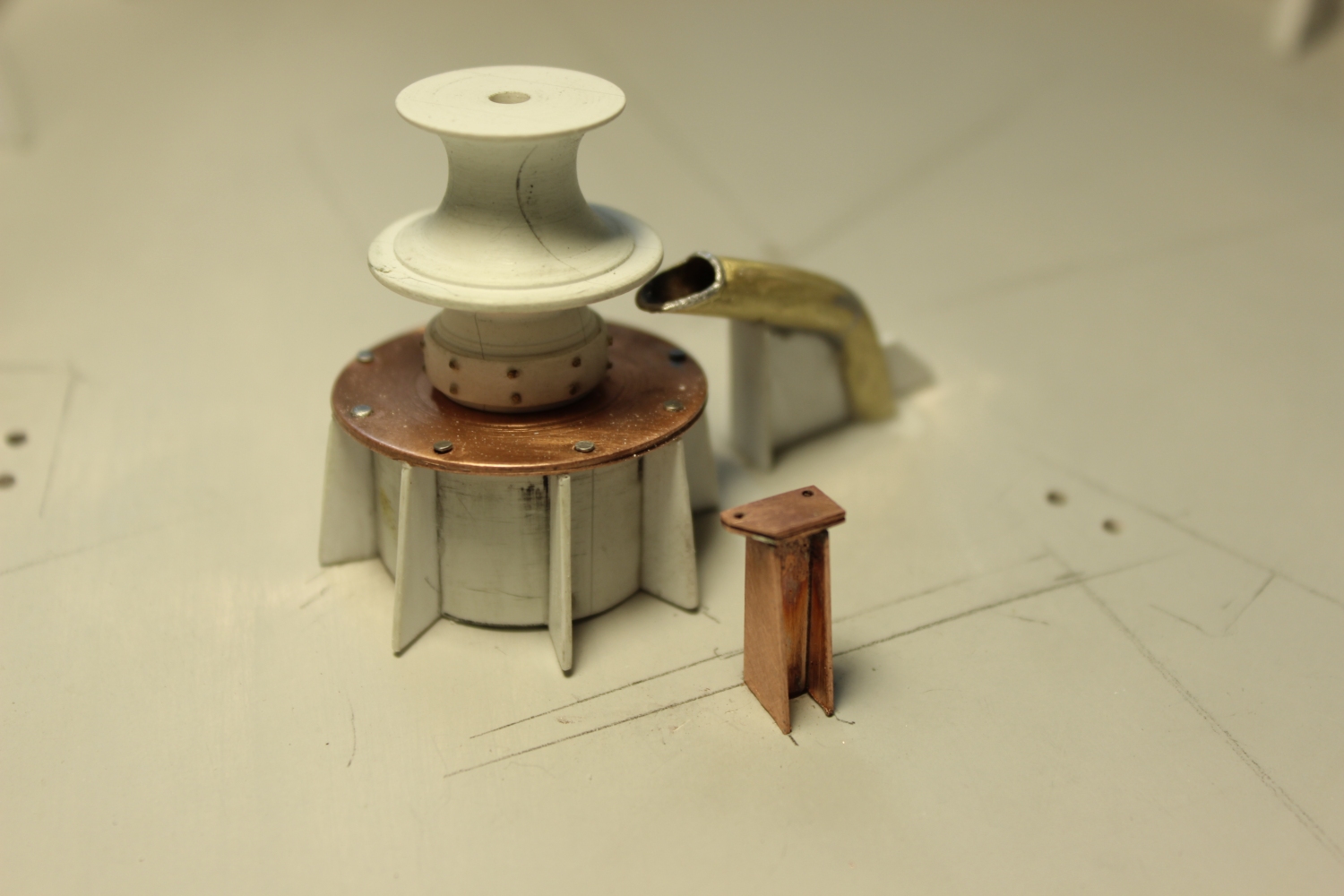 Udało mi się pomalować stoper łańcucha , w budowie mam windę kotwiczą , a dla relaksu rozmieściłem wykonane elementy na pokładzie , mocowanie przy użyciu kołków