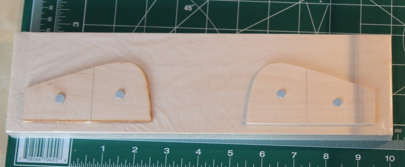 Producent dostarcza rysunki kształtek (grodzie, które jednak nie stanowią elementu modelu) na papierze samoprzylepnym. Jednak w nowszej wersji kształtki są już wycinane laserowo. Niestety jedna nie została wycięta - element końcowy na którym będzie opierana stewa jest tylko jeden. Na szczęście jest wolny kawałek deseczki, na którym odrysowałem brakujący element i wyciąłem przy pomocy ręcznej piłki i nadałem ostateczny kształt pilnikiem. Na kształtkach wyznaczona jest pionowa oś symetrii. Linia pozioma wyznacza dokąd sięgać będzie poszycie na danej "grodzi".