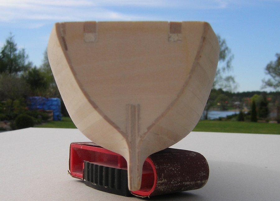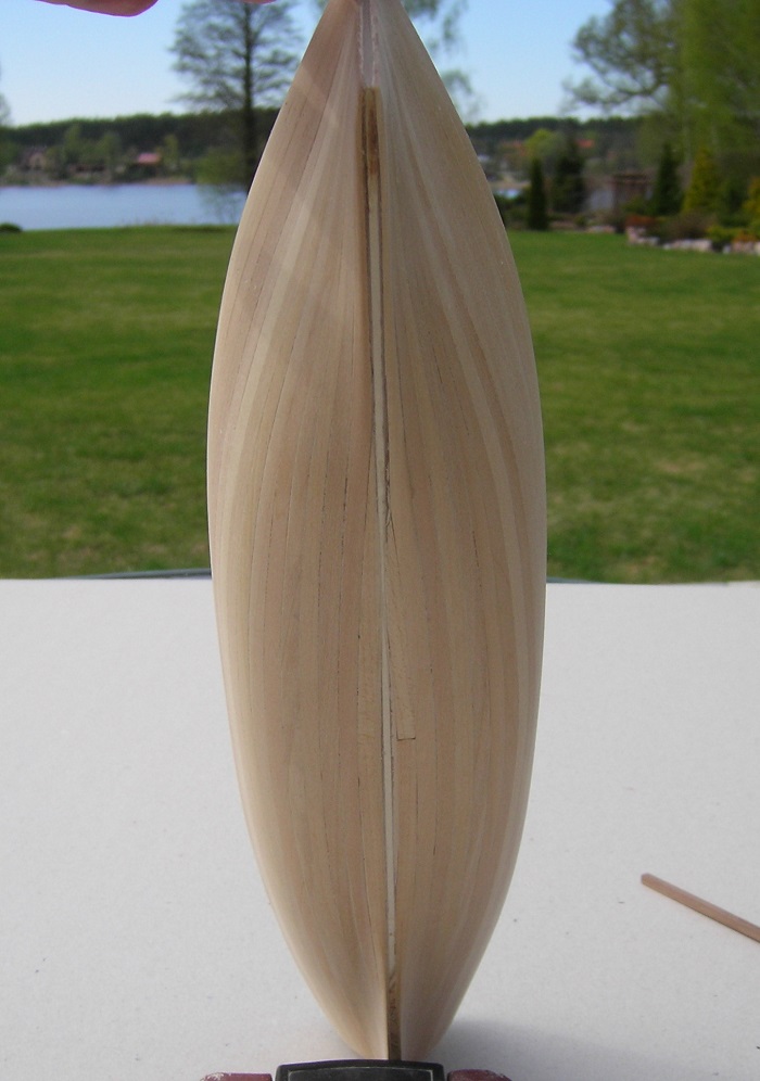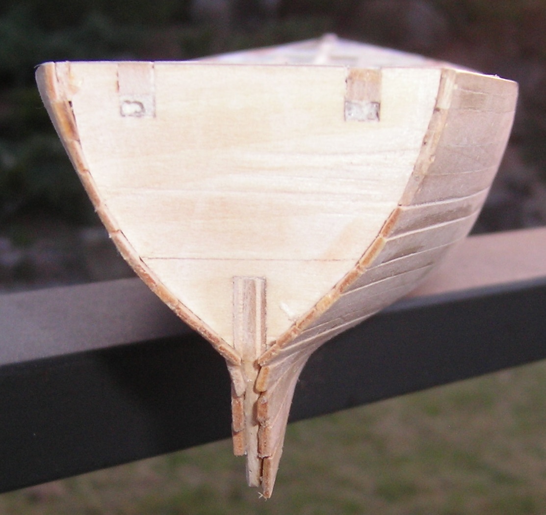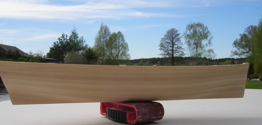 Witaj Krzysztof. Na moje oko to planki na rufie są ok. Jeszcze szlif i będzie całkiem cacy. Nie zapomnij tylko aby przy poszyciu właściwym najpierw okleić pawęż, a dopiero potem oklejać resztę kadłuba. Jak narazie uważam, że świetnie Ci idzie