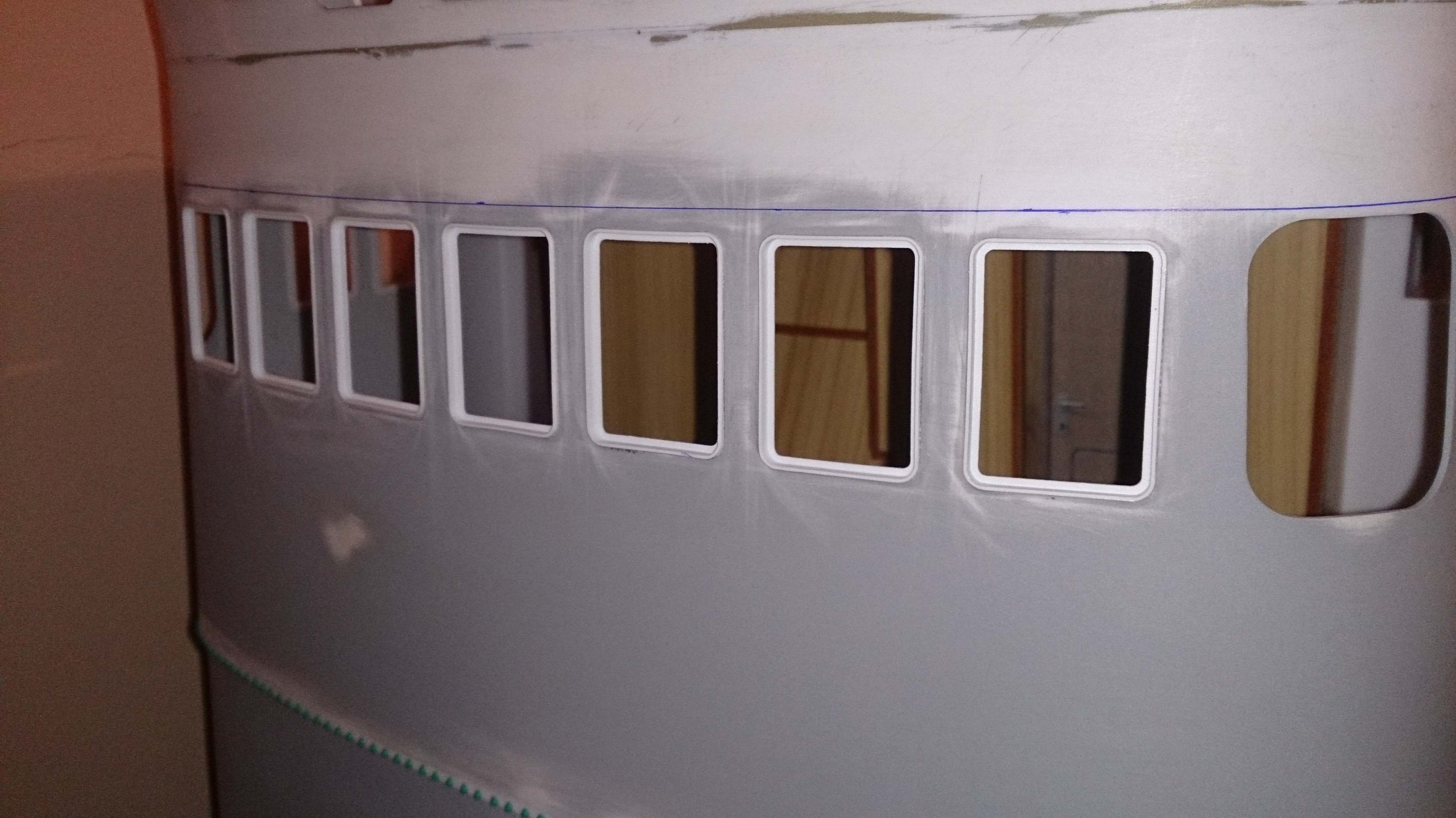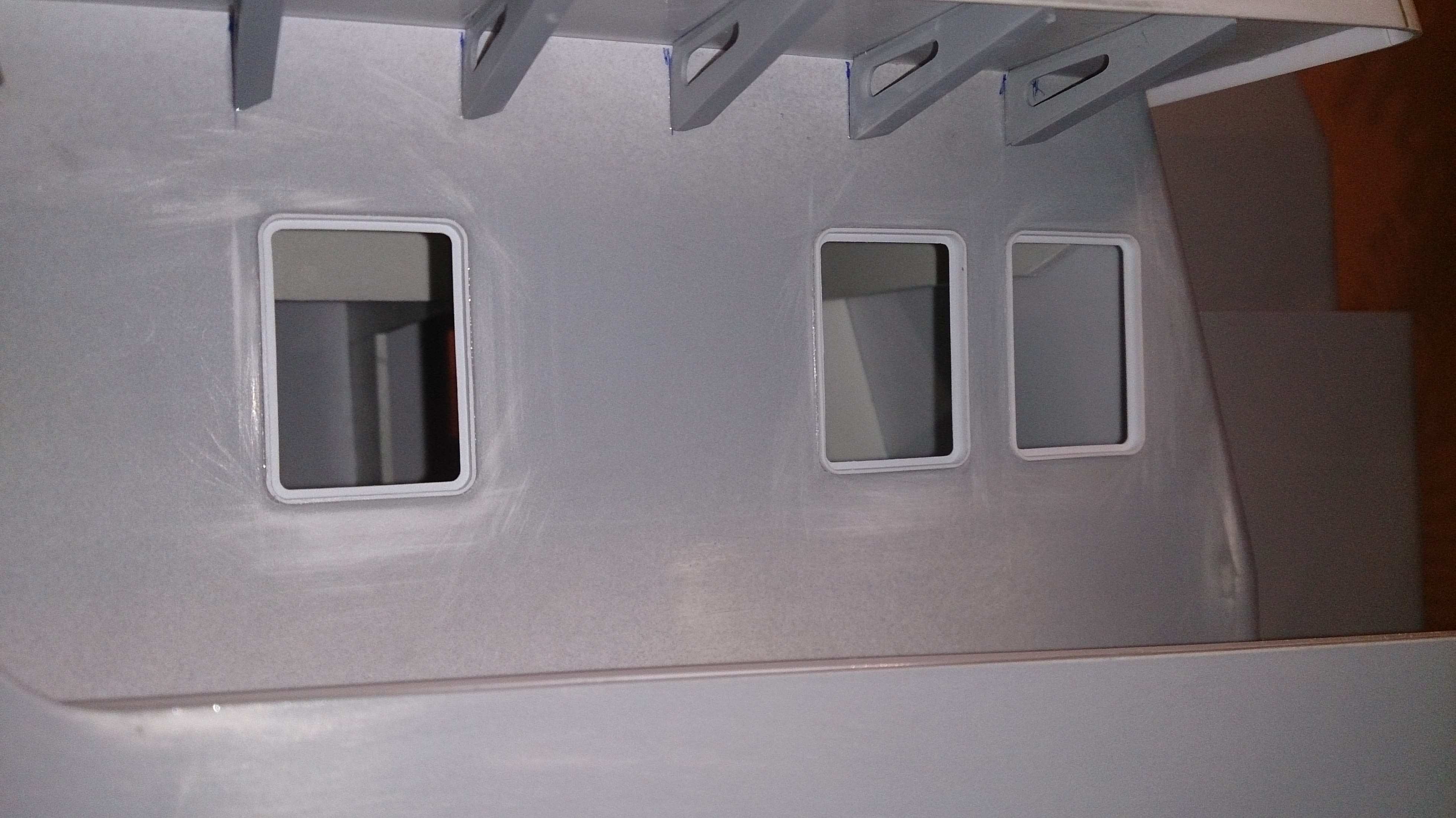 No i ramki wklejone w sterówkę, doklejony właz na przodzie nadbudówki, i nitowanie.