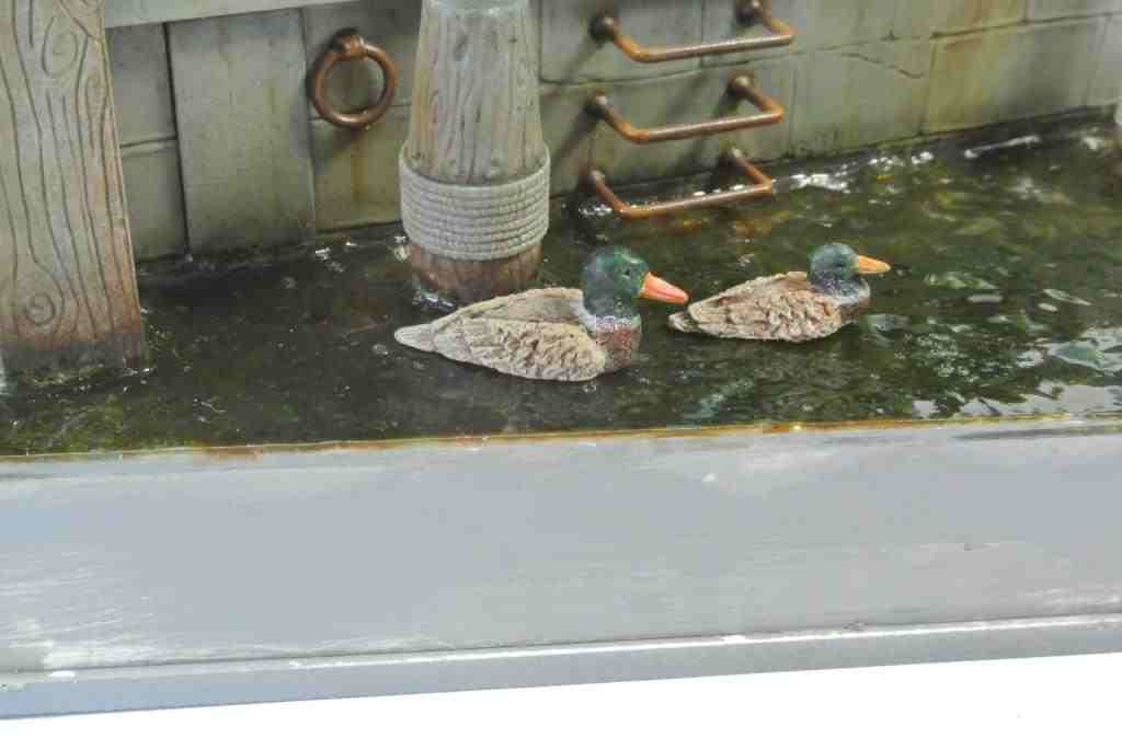 Ten spływający klej na pewno usuniesz, ale czy zmienisz pale wystające z wody? Byłoby szkoda, żeby ta piękna diorama miała niedopracowany tak błahy element. Nie podejrzewam, żebyś zrobił je z drewna (co byłoby najlepsze, ale na tym etapie chyba niemożliwe), ale chociaż zamalujesz je jakoś autentyczniej - prawda?