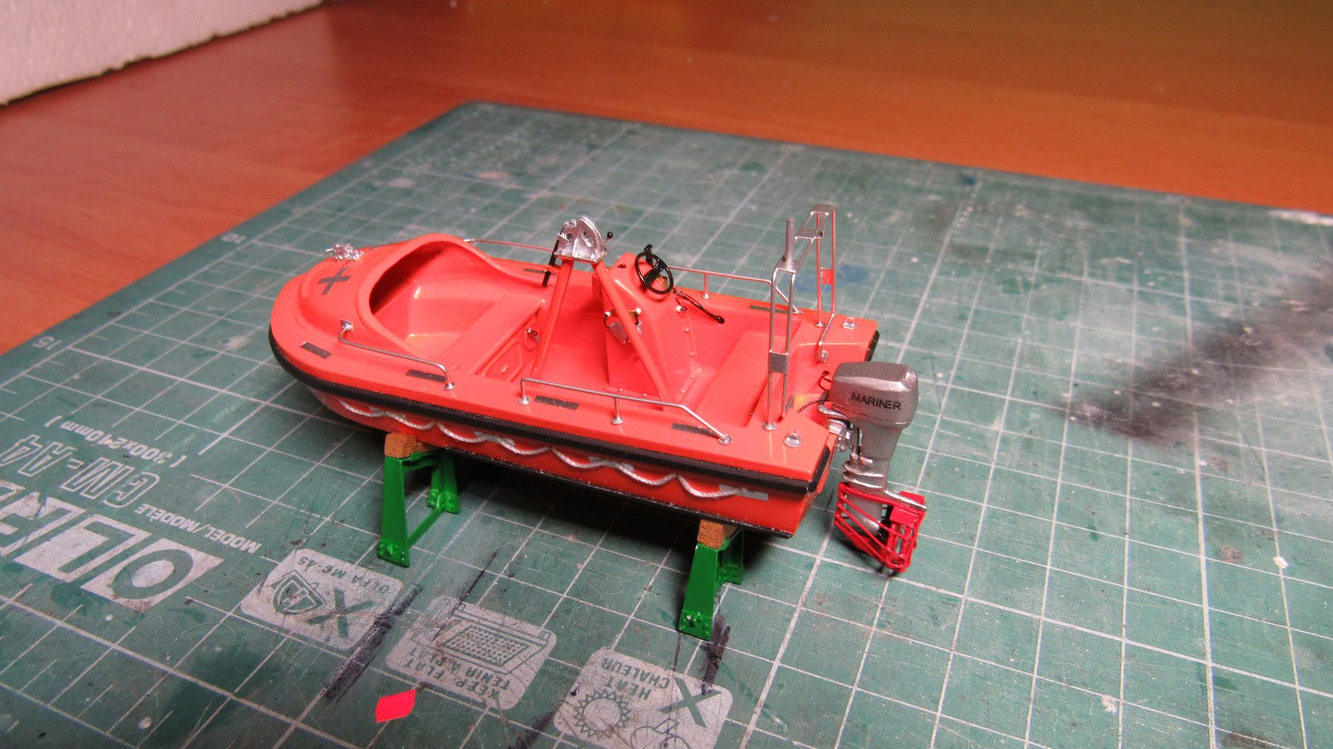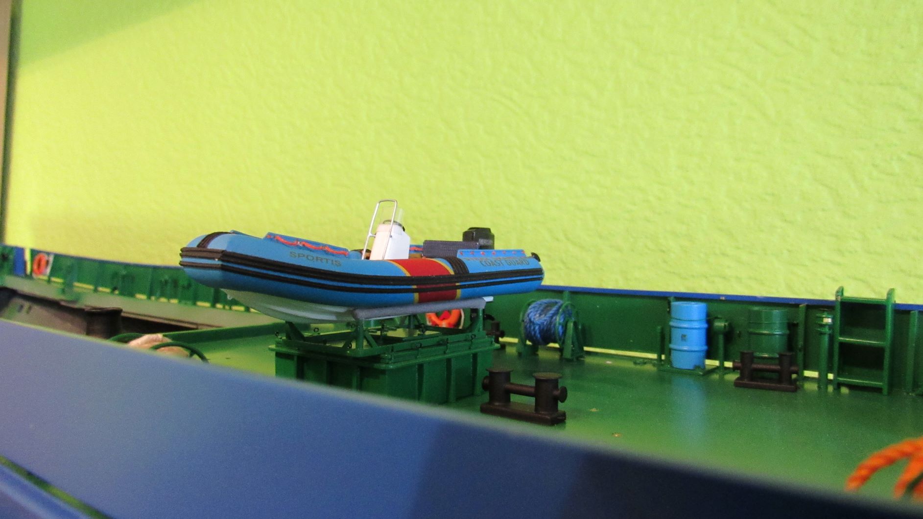 Święta z dala od rodziny zaowocowały wykończeniem na gotowo pokładówki, oraz kolejnym elementem pod spardekiem. Zastanawiam się czy zamocuję łańcuch kotwiczny na kotwicy zapasowej, czy cały zwinę pod podestem .