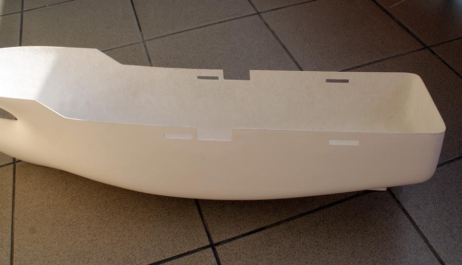 Kadłub zakupiłem w znanej wszystkim firmie i jestem z niego zadowolony. Żadnych niedoróbek, wgłębień itp. Wymiarowo zgadza się z tym co mam na dołączonych do kadłuba planów. Zewnętrzna powierzchnia nie wymaga żadnej pracy. Szpachlować trzeba będzie wewnętrzną stronę nadburci.