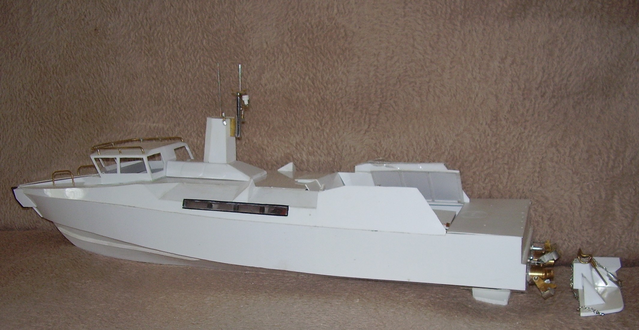 Jestem w trakcie budowy modelu kutra z polistyrenu a dokładniej z HIPS 1,0 Zamieszczam zdjęcie dla orientacji, jak to wygląda. Nie jest to mistrzowska robota a to dlatego, że plany są tylko w 3 rzutach i model trudny. Łatwo o błędy i były poprawki. W zasadzie model eksperymentalny.