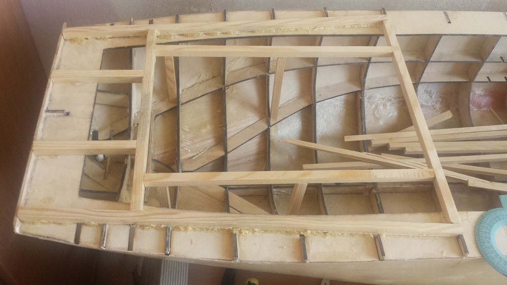 Zależało mi na tym aby zrobić je teraz ponieważ zrobią mi podwalinę pod różnicę poziomów pokładu rufowego... poza tym wnętrze kadłuba będę mazać żywiczką a jak już będę to robić to belkom rozporowym też się dostanie...