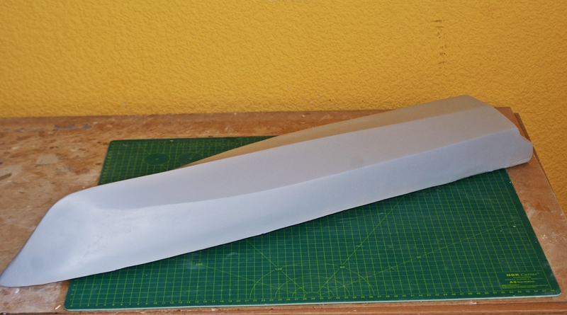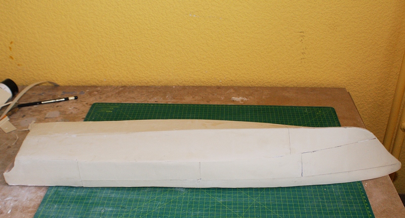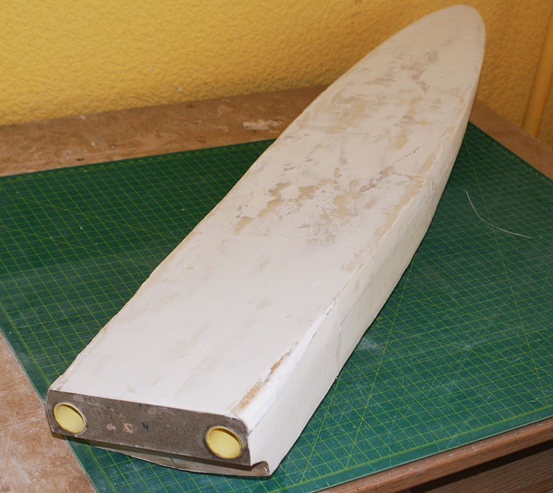 Mała aktualizacja. Kadłub został oklejony brystolem. Po zagruntowaniu klejem, szpachlowanie i szlifowanie.
