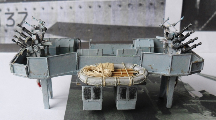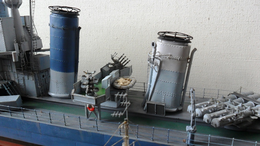 Witam,troche mnie tu nie było, remont domu trwa więc postępy w stoczni słabo widoczne ,ale stale coś się tam dodaje przerabia.Zamontowałem łańcuchy i kotwice,podniosłem stanowisko orlikona przy nadbudówce dowodzenia Wszystko gotowe prawie do montażu linek masztu, łodzi ,kominów.Do poprawki łodzie ,tratwy i pontony.Poprawiłem ,przedłużłem lufy w działach głównych i pl 76.2.Sporo jeszcze do końca ale widać światełko w tunelu,pozdrawiam Marek