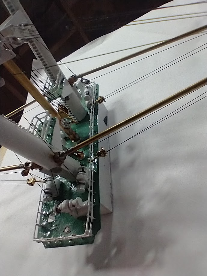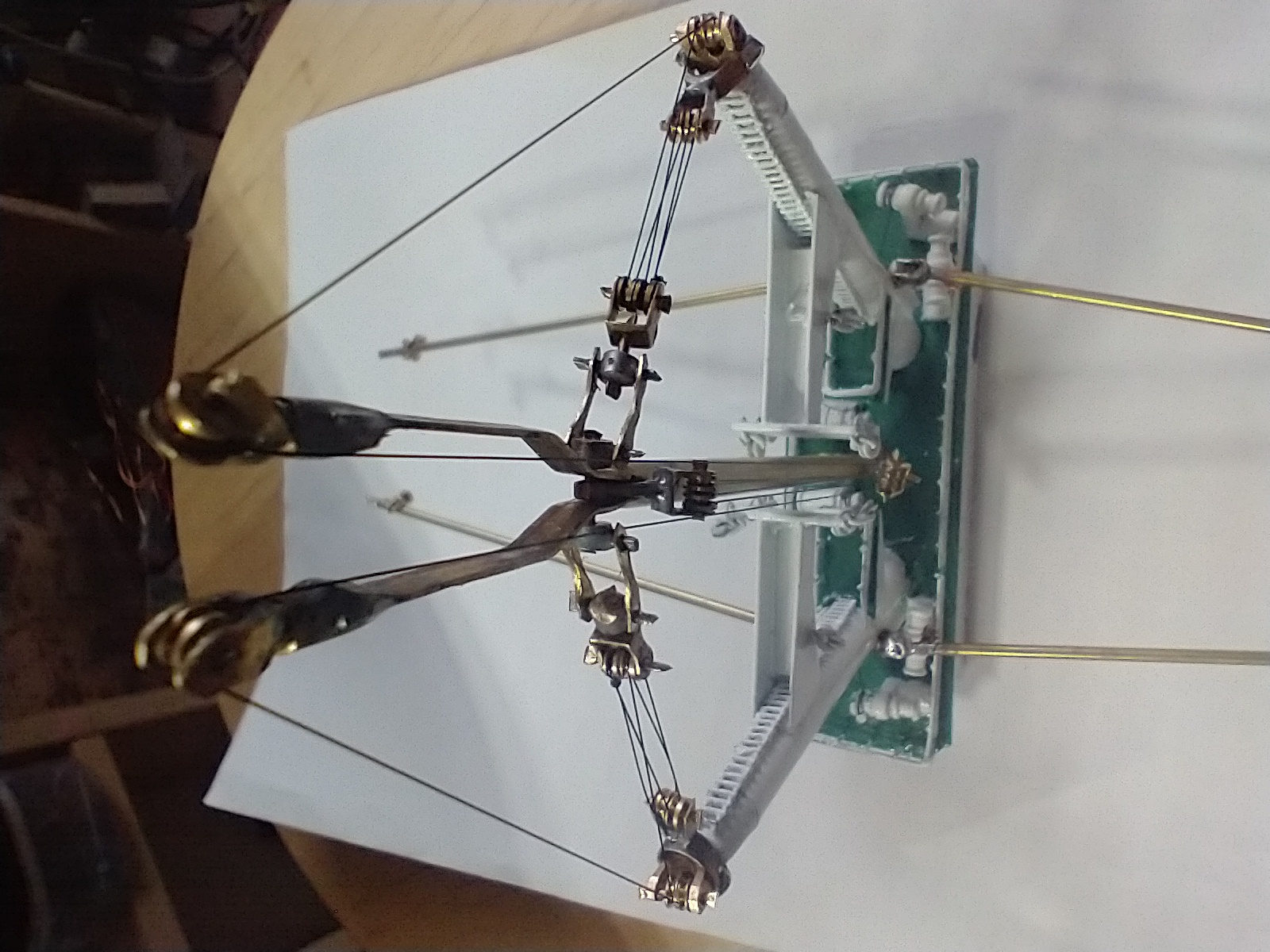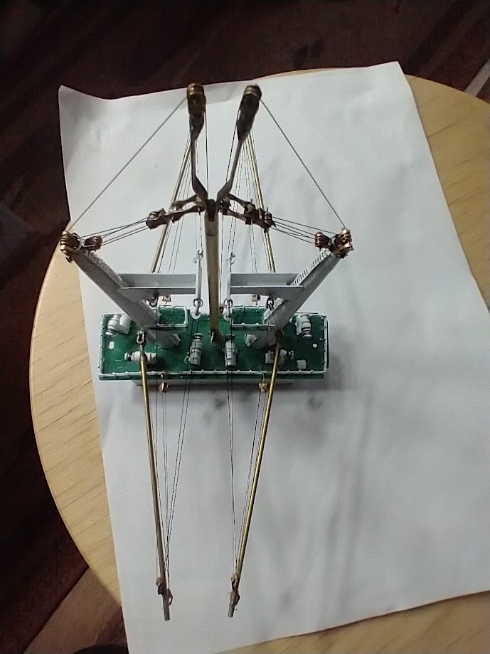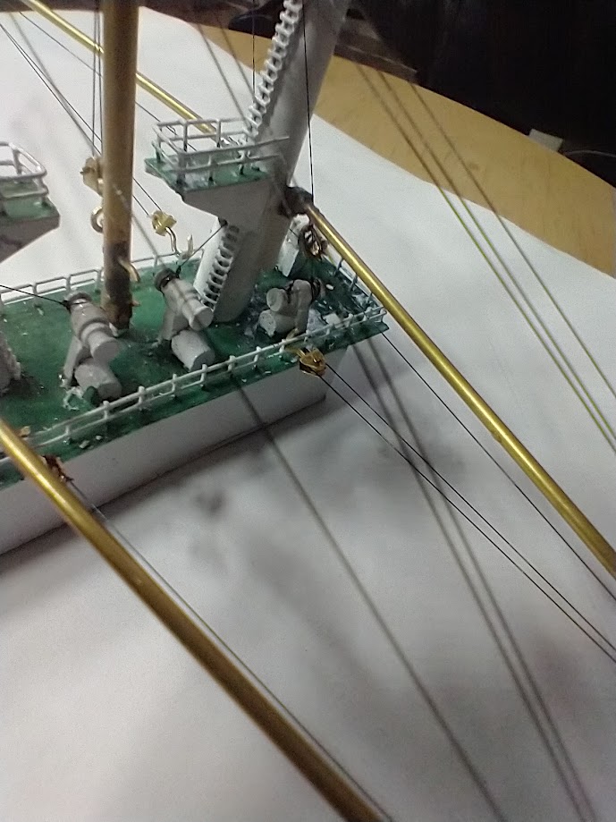 Teraz jedno z trudnych wyzwań ,jak zrobić olinowanie aby dało się to wszystko w razie konieczności zdjąć dość szybko bez naruszania struktury olinowania .Jako liny zastosuje żyłkę tylko muszę ją jakoś pomalować na czarno .