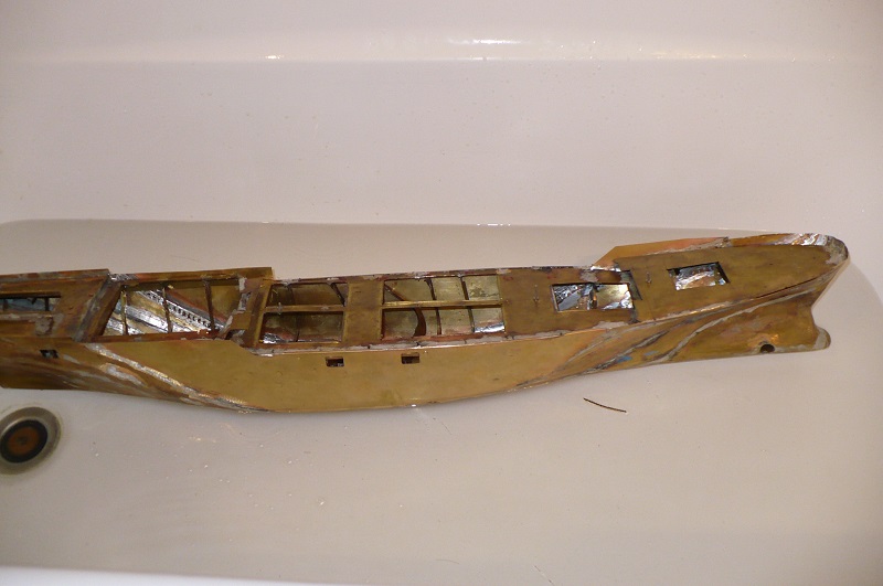 Dzisiaj już na spokojnie . Model będzie wymagający , mam na myśli budowę nadbudówki i całego wyposażenia .Będę musiał kontrolować na każdym etapie jego przechyły . Ten przechył wziął sie z tego że mierząc lewą burtę pomyliłem wymiary o 10 mm i musiałem dolutować pasek co od razu objawiło sie przechyłem .Z całego środka mam na myśli pokład środkowy wyjmę wszystkie wręgi aby silnik i wszystkie elementy umieścić jak najbliżej dna , ( obniżę środek ciężkości ). .Teraz zajmę się dopracowywaniem pokładu i burt .To takie przemyślenia .