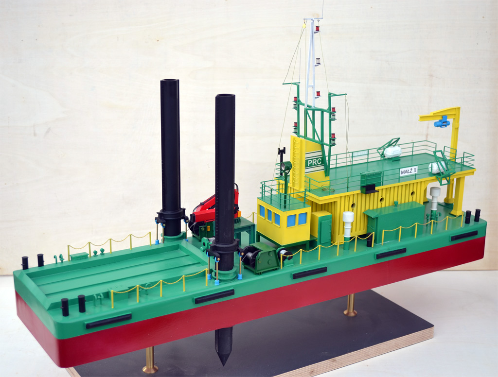 Żeby nie było że nic nie robię to się pochwalę że jakiś czas temu wykonałem model pogłębiarki Łyżkowej. Model budowałem od podstaw mając bardzo skromną dokumentację i raptem kilka zdjęć. Brakuje tutaj samej koparki która jest zakotwiczona łańcuchami do pokładu.