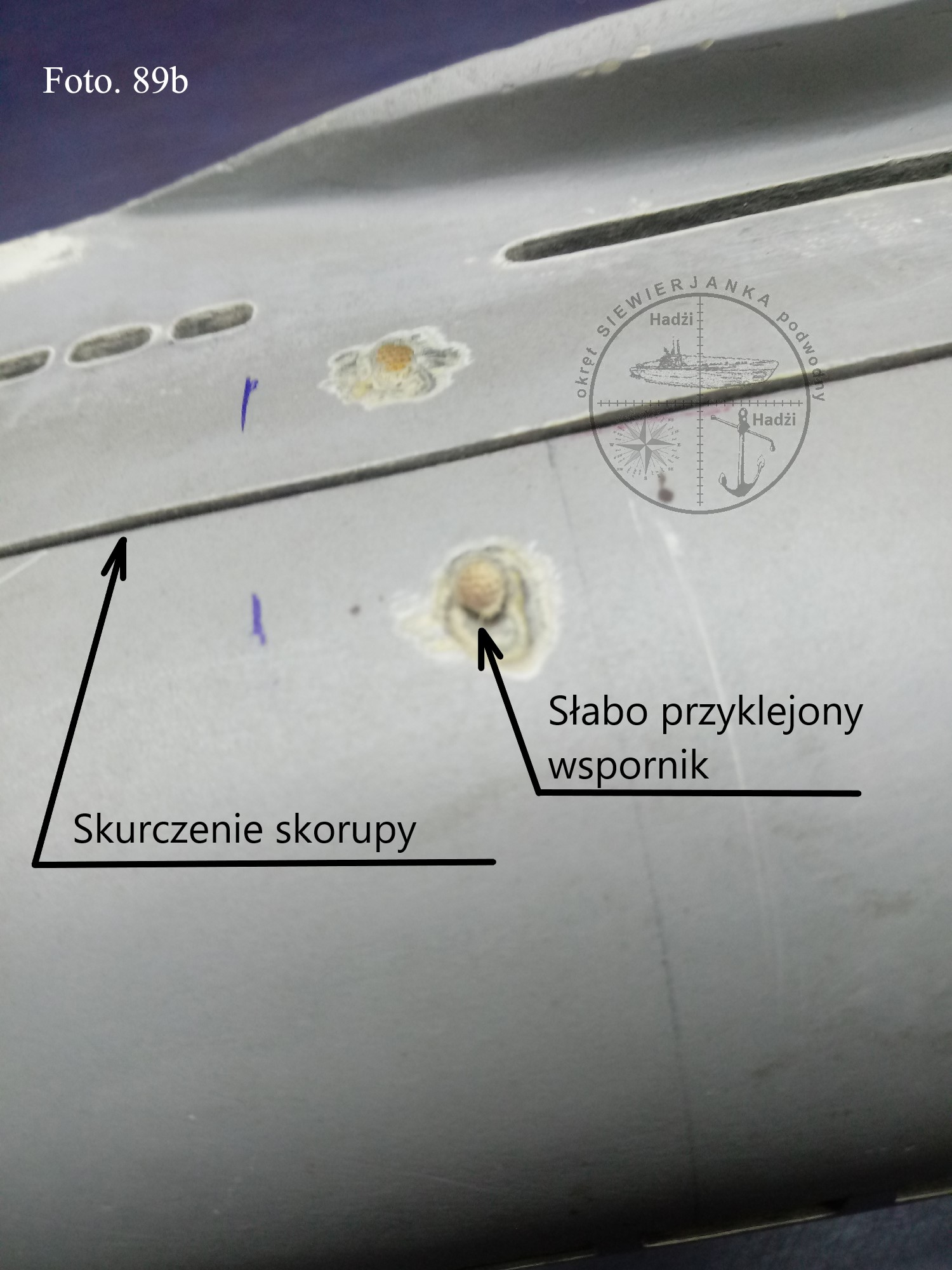 Po stwardnieniu kleju nadmiar będzie obcięty i zeszlifowany do powierzchni burty. Po rozcięciu okaże się jak zachowa się skorupa. Jak się nic nie będzie działo, te, co będą w czymś przeszkadzały zostaną usunięte.