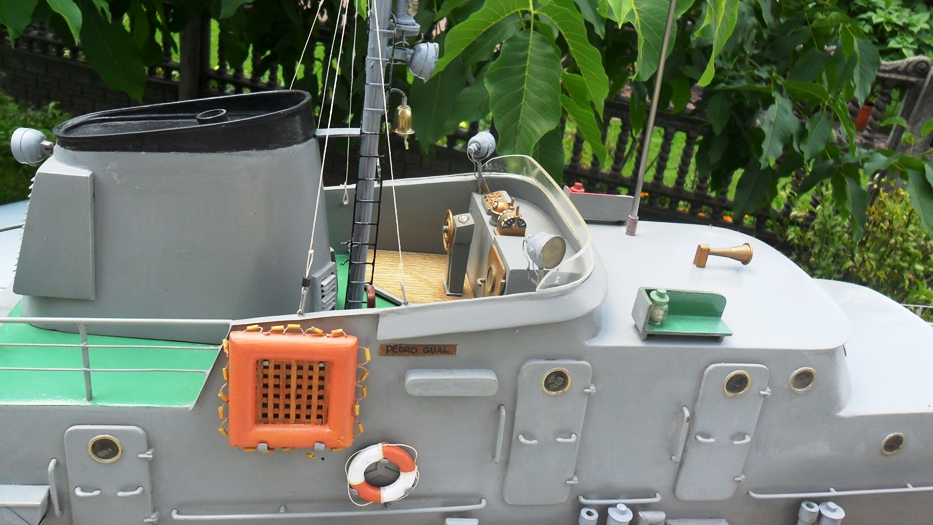 Kapitan pływał trzeci raz w życiu,,,.Nadbudówka ma trochę za dużą masę ,wykonana w całości ze sklejki 3 ma za wysoko środek ciężkości ,ale w tedy się nad tym nie zastanawiałem,.