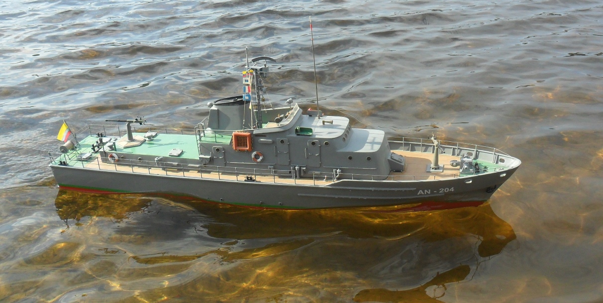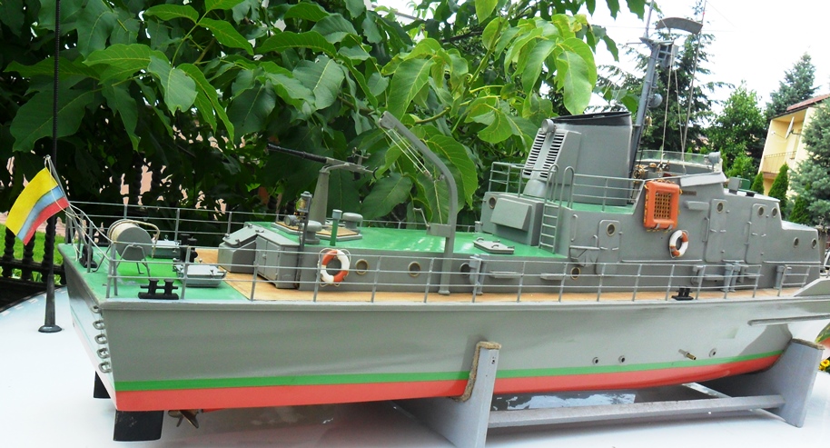Witam,dzisiaj rano pływanie po naprawie dziobu i pompce wodnej na bardziej eleganckiej przetwornicy ,mimo 5 A mocy, nagrzały się wszystkie tranzystory na płytce ,ale nie włączyłem nadmuchu,może byłoby lepiej ,wytrzymały dwa akumulatory,Jednak 12 żelowa chyba jest trafiona ,słabo pływał, nie ma mocy. Pływał około 10 min. Aku 7,4 super ,widać moc mimo dwóch silników 480 .Do napędu pompki próbnie użyłem starego aku z nadajnika,dał radę , nastawiłem przetwornicę na 4,4 V.Parę zdjęć złożonego modelu jest jaki jest, ale to staruszek.Stępkę położyłem w 1974 roku ,75 był gotowy do złożenia,pierwszy raz pływał w 1985 na Pilocie 2.Po następnym pływaniu zamieszczę link z pływania. Chcę wszystkim kolegom bardzo podziękować za rady ,linki przy naprawie modelu,dziękuję,pozdrawiam Marek