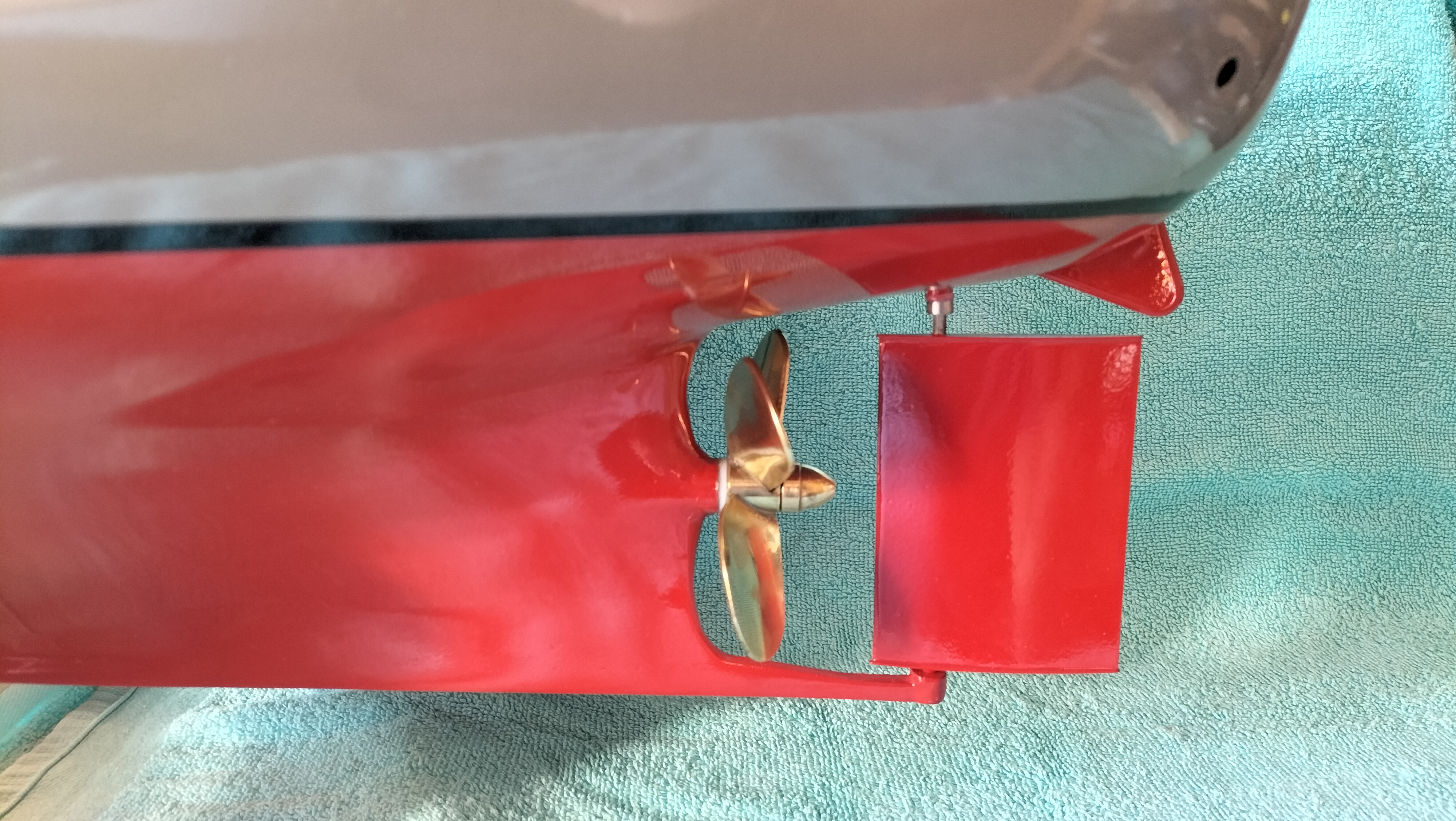 W tym modelu chciałem wykonać ster łatwo demontowany. Jest to wymagane, aby był łatwy dostęp do śruby. Chodziło mi też, aby to tak zrobić by nie ingerować w cały układ sterowania w kadłubie: dźwignie, popychacze, serwo.