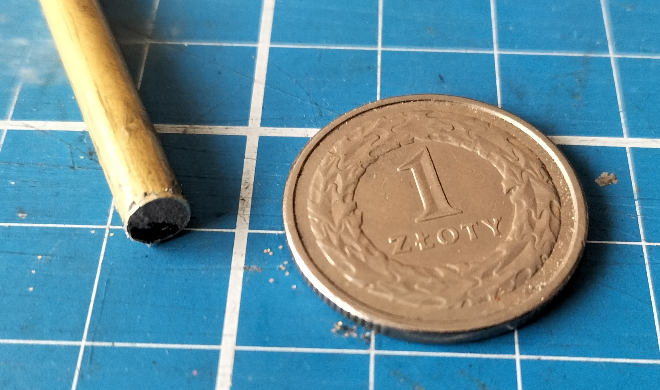 Forma to pręt aluminiowy 4 mm, odpowiednio nacięty w rurce mosiężnej.