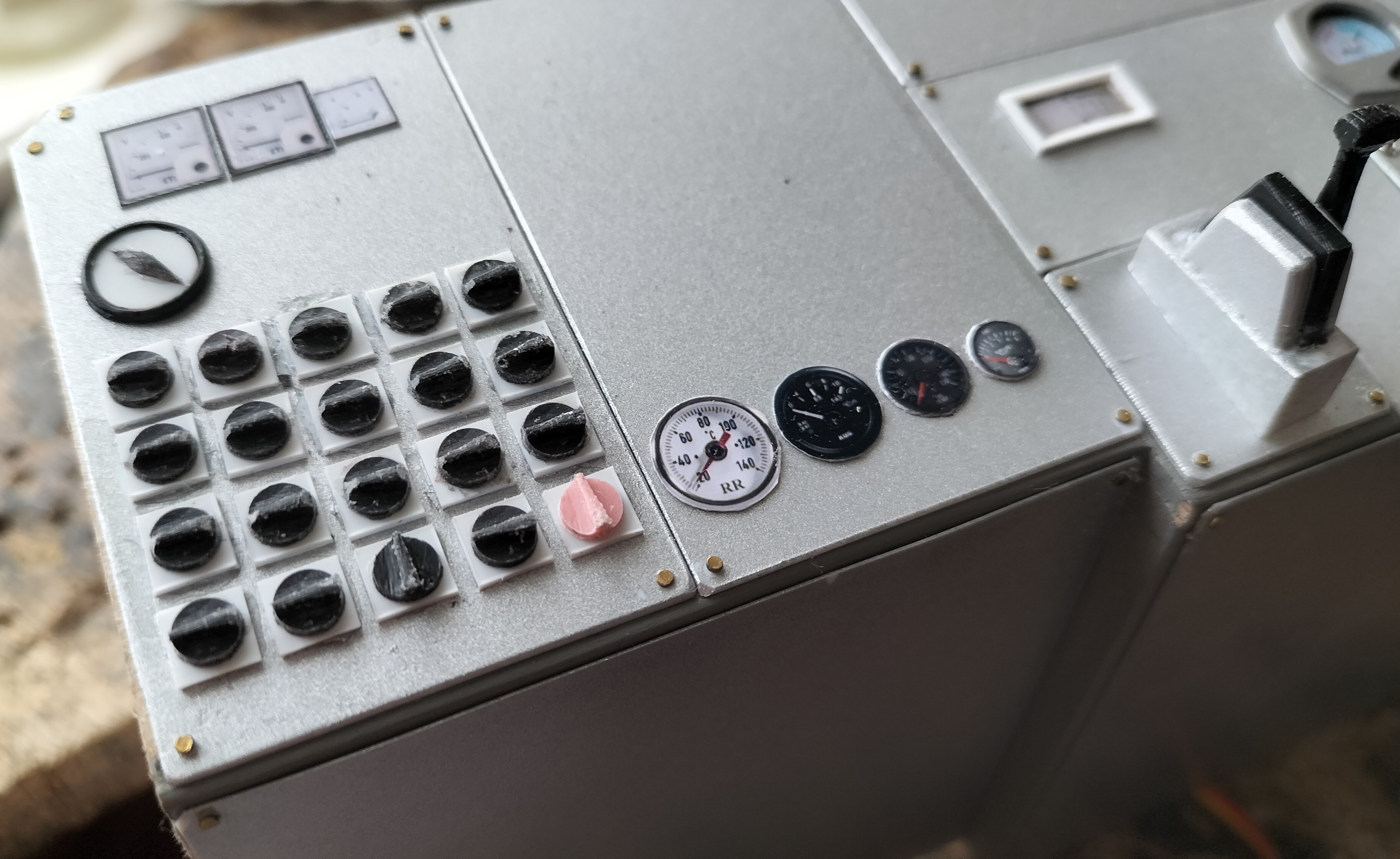Na załączonych zdjęciach ze sterówki statku widzimy bardzo dużo włączników obrotowych. Myślałem jak wykonać te pokrętła włączników.