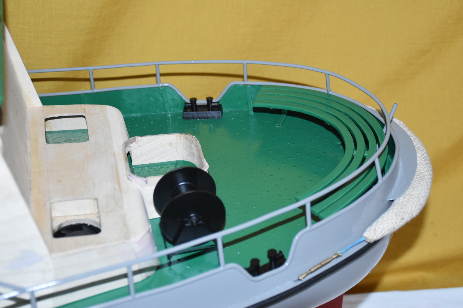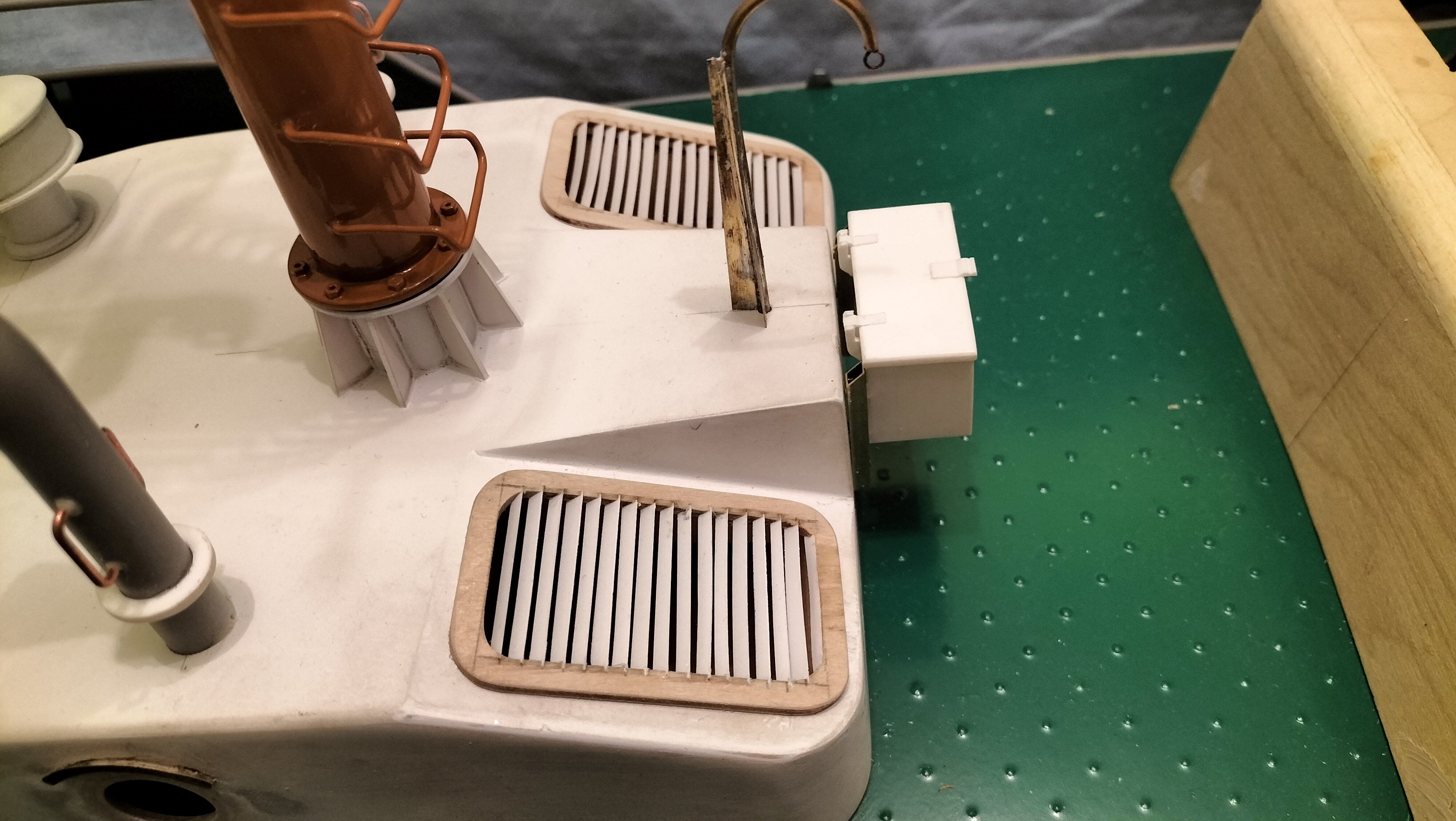 Zamknąłem temat żaluzji na włazach na przedniej skrzyni, wieszak na dzwon, oraz zamontowałem skrzynkę na środki pirotechniczne: