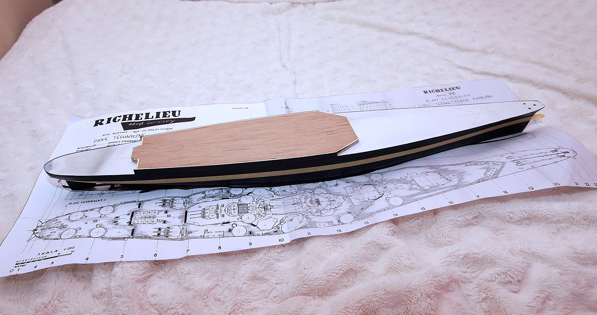 Jakiś czas temu rozpocząłem budowę Francuskiego Pancernika Richelieu w skali 1/300, bo na taką skalę pozwala mi żona