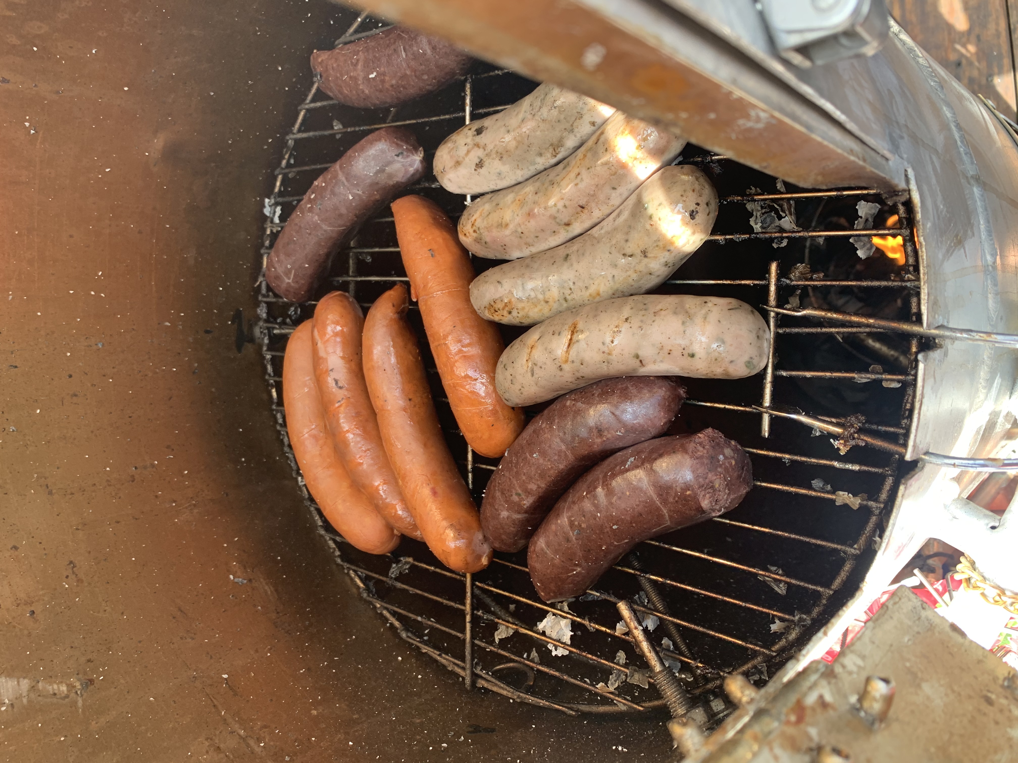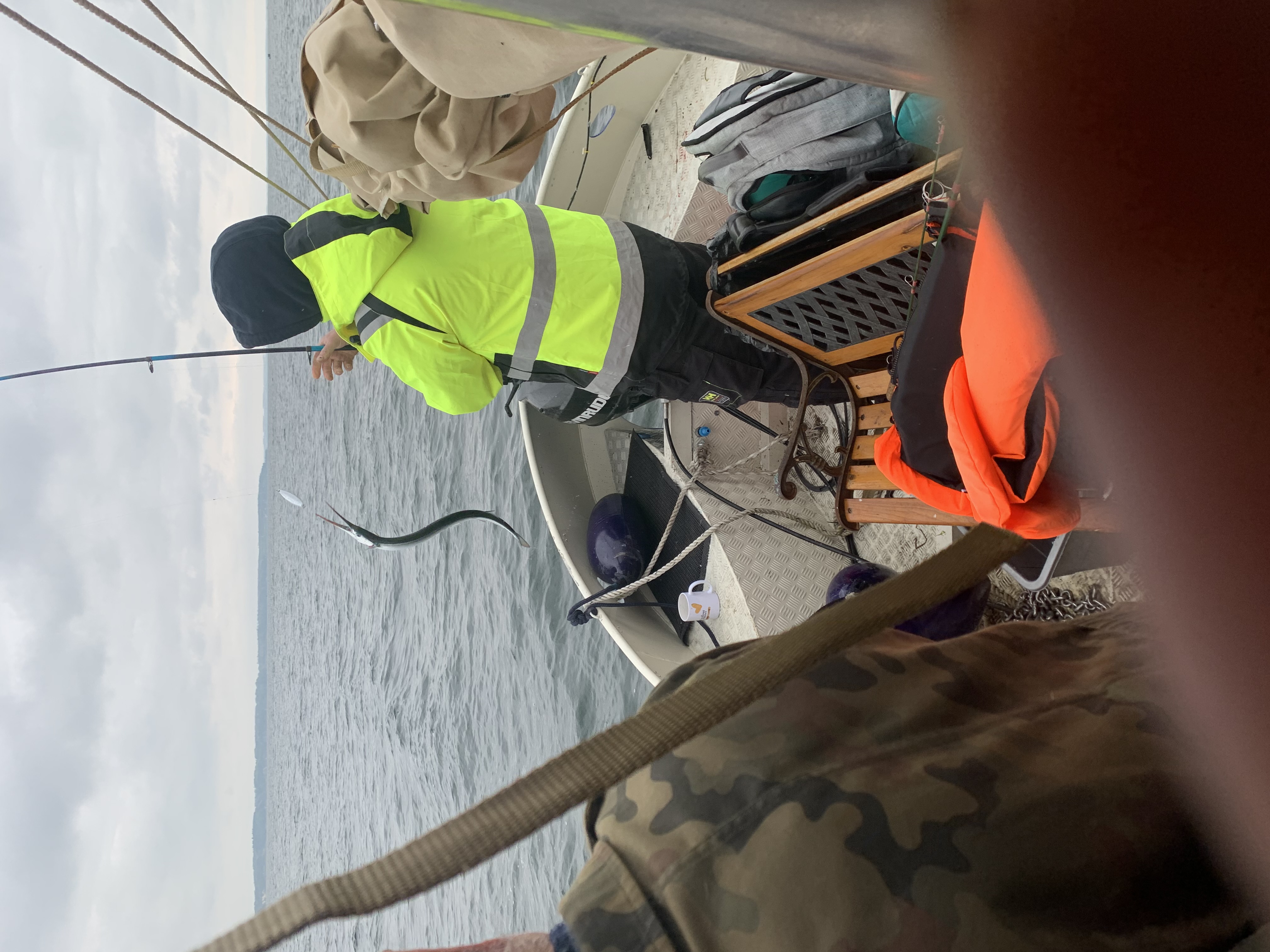 Te ostatnie fotki to grill i wędzarnia a leci to tak jak tylko odbijamy od pomostu rozpala się grill w kominie i kładziemy kiełbaski a ja steruję Pancernikiem a reszta wyrzuca wędki na troling czekając na branie Belony . Potem zjadamy te kiełbaski i jak mamy farta to pierwsze cztery belony wypatroszone trafiają do komina i je wędzimy a jak mamy pecha to mamy szczęście bo zabieram ze sobą zapeklowane boczki i schab oraz karkówkę i już na koniec podróży przy pomoście gorąca degustacja mięsiwa . Uwierzcie turyści aż pękają z zazdrości a Ci z plastykowych jachtów też .