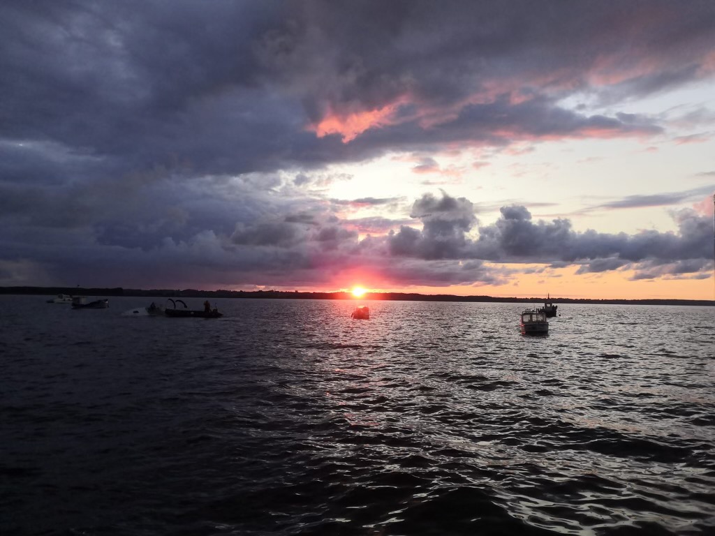 Witek Latem jak pogoda dopisuje wieczorami na pokładzie się dzieje . Czyli maleńki rejs o zachodzie słońca i morskie opowieści . Ja pracuję pry ratowaniu majątku armatora a to już jest często cala masa wspomnień u kolegów to samo im więcej wody mineralnej pijemy tym ciekawsze opowieści aż zjawia się jakaś druga połowa i za ucho wyprowadza z Pancernika Czasem jednak bywa i tak że zostaje na chwilkę wciągnięta w rozmowy i po niej, czyli pije mineralną razem z nami a potem nadchodzi świt . Spotykamy się nazajutrz pijąc kawę i częstując się aspiryną wyprodukowaną przez wroga . To były najlepsze wakacje w moim życiu .