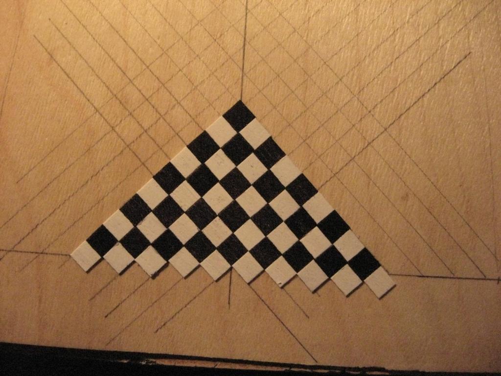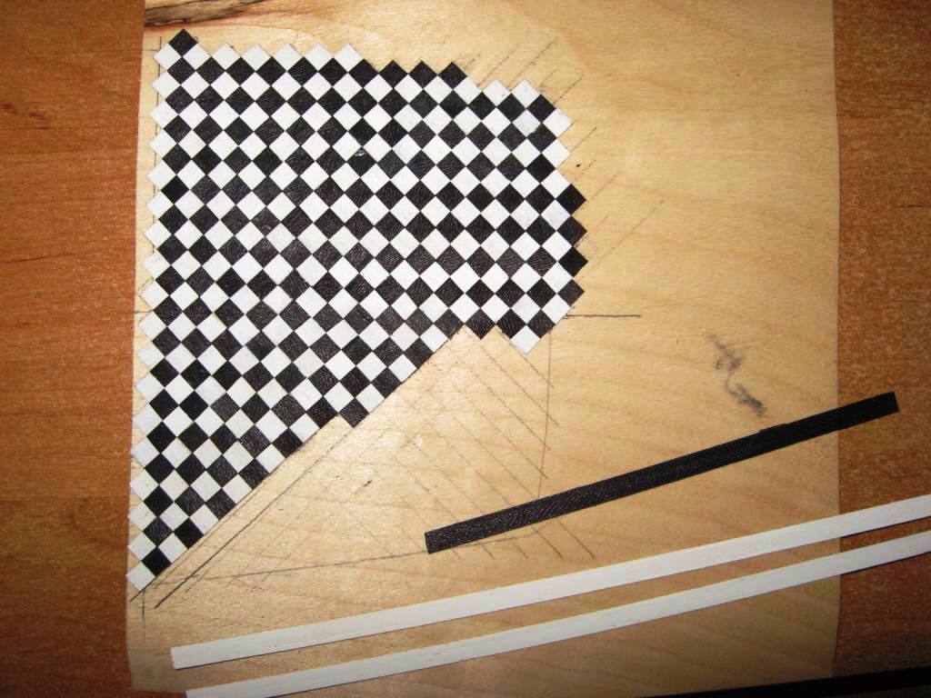 Wierz mi, wykonanie tej szachownicy metodą intarsji nie jest zbyt trudne, to tylko kwestia opanowania technologii. Ja właśnie robię okienka (9 x 10 x 0,8 mm) do galerii rufowej Santisimy Trinidad. To jest jazda.