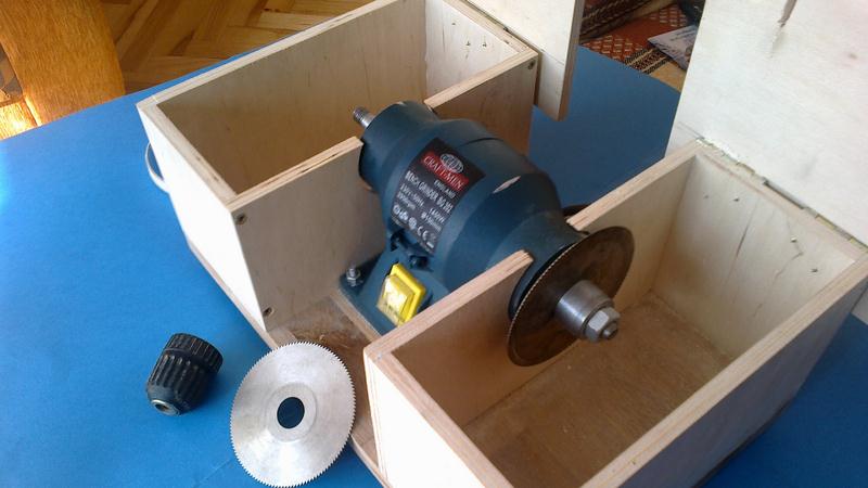 Po lewej będzie szlifierka tylko jeszcze będzie wycięty otwór na tarczę(kółko ze sklejki10mm) z papierem ściernym.